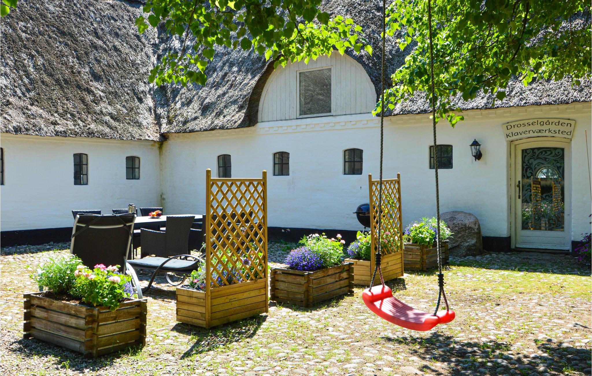 Nyd jeres morgenmad i den idylliske gårdhave, mens børnene leger på gyngen eller udforsker naturen. Brug liggestolene til stille stunder eller organiser stemningsfulde grillaftener i velkendt selskab.