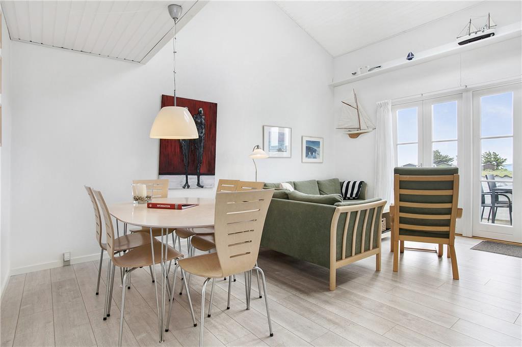 Træd ind i denne hyggelige ferielejlighed, hvor lyset strømmer ind gennem de store vinduer og skaber en varm og indbydende atmosfære. Stuen er hjertet i boligen – et rart sted at samles med dine kære til spil, gode samtaler eller afslapning efter en dag fuld af oplevelser. Den moderne og praktiske indretning gør lejligheden behagelig året rundt. Køkkenet er veludstyret og ligger i åben forbindelse med stuen, så du kan være en del af hyggen, mens aftensmaden bliver tilberedt. Der er plads til hele familien i de tre soveværelser, hvor du kan falde til ro og lytte til havets brusen i baggrunden.