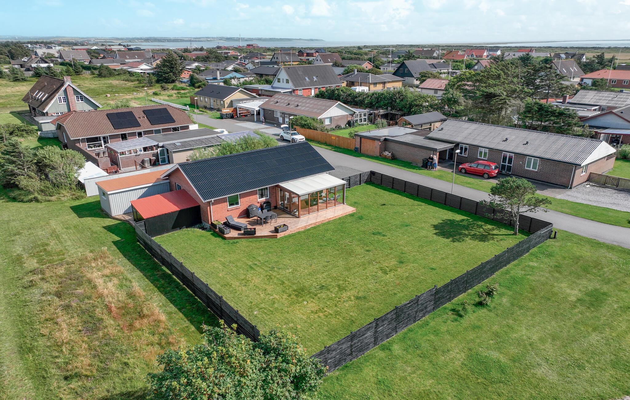 Charmerende feriehus nær Jyllands vestkyst med modernitet og naturudsigt.
