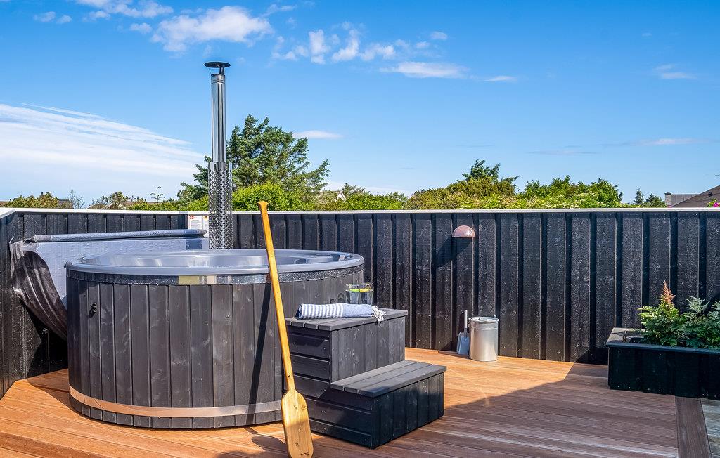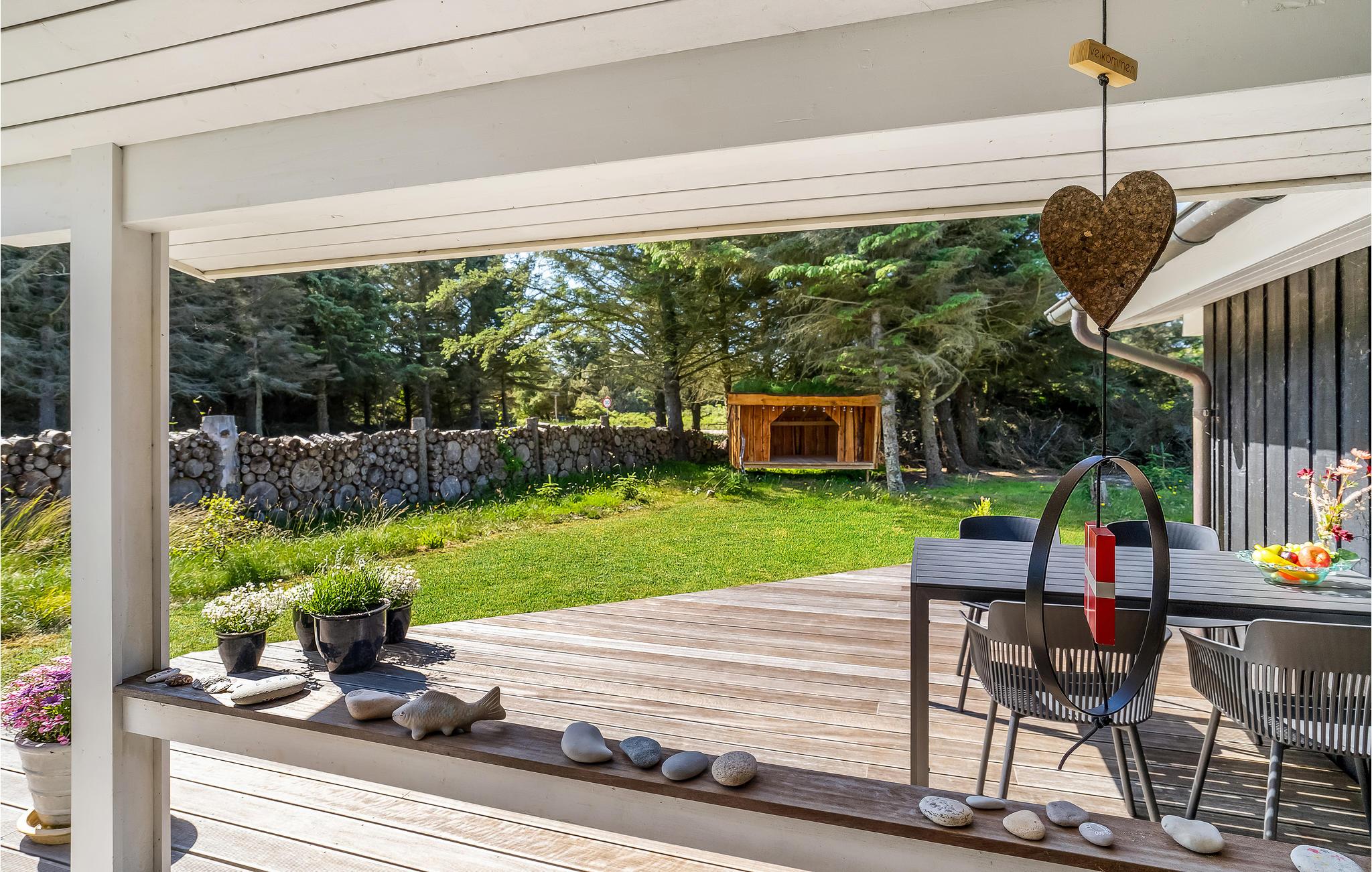 Tag en afslappende tur i vildmarksbadet på terrassen. På den delvist overdækkede terrasse er havemøbler og en grill klar, så I kan tilbringe mange skønne timer i det fri. Der er også et shelter ved huset, hvor I kan få mange hyggelige timer til at gå, og måske endda tage en udendørs overnatning.