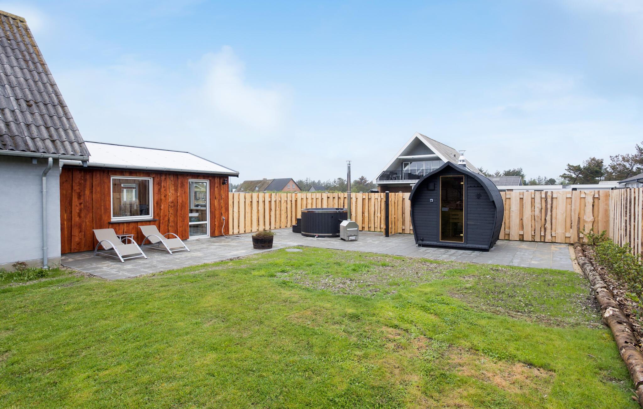 Lad turen gå til skønne Agger Strand med den udvidede familie eller måske flere vennefamilier og se frem til nogle vidunderlige stunder i dette store hus. Huset byder på masser af plads og rum over to etager, hvor der er lagt op til en ferie med masser af hygge, afslapning og afveksling i hinandens gode selskab. Huset fremstår på én gang hyggeligt og moderne med en gennemtænkt og åben indretning. Tag jer god tid i køkkenet og kreer nogle lækre retter for hele flokken, og måske I skal nyde måltiderne i det fri i på en af terrasserne? Lad blot børnene lege rundt og spille bold i haven, mens I tilbereder nogle lækre retter på grillen. På de varme sommeraftener kan en dejlig feriedag gå på hæld med et køligt glas vin og måske med overnatning under stjernerne i shelteret.