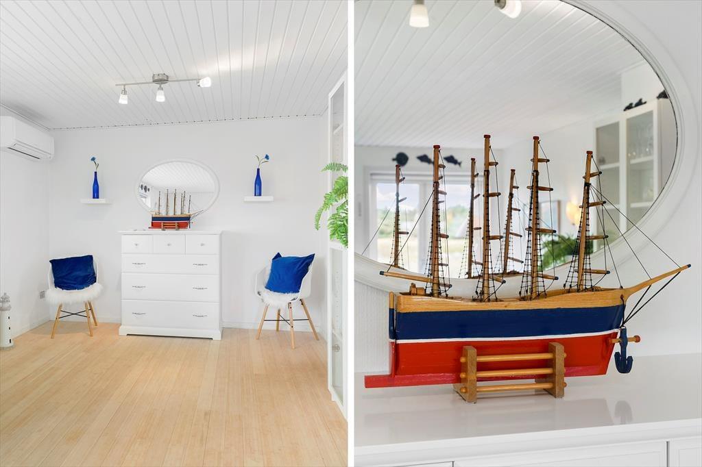 Træd ind i dette stemningsfulde sommerhus, hvor farver og detaljer vækker glæde fra første øjeblik. Husets indretning er varm og indbydende med et miks af farver og materialer, der skaber en unik og personlig atmosfære. Varmepumpen sikrer en behagelig temperatur året rundt, så du altid kan føle dig godt tilpas, uanset om solen skinner fra en skyfri himmel, eller vinden blæser fra vest. Sommerhusets køkkenalrum er åbent og funktionelt, så hele familien kan samles om madlavningen og nyde fælles måltider i lyse og venlige omgivelser.
