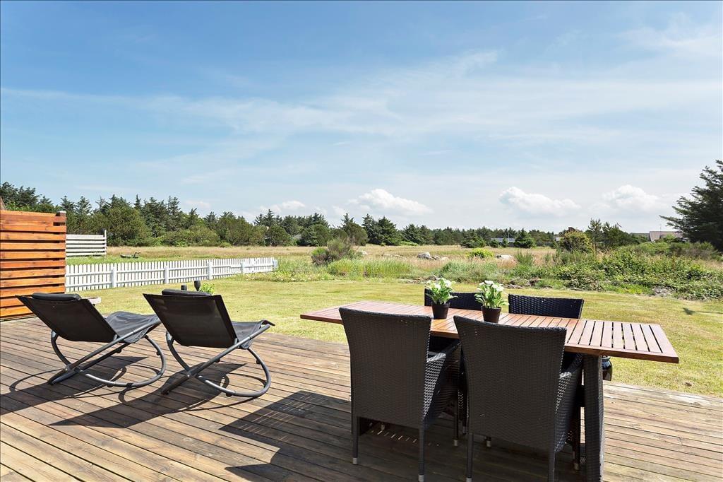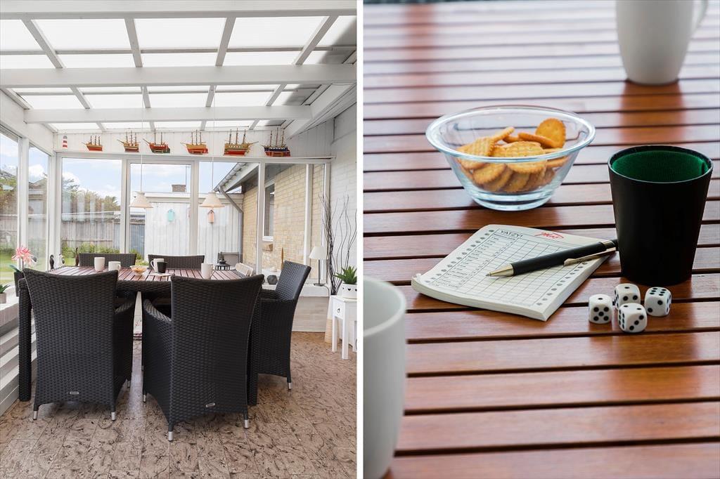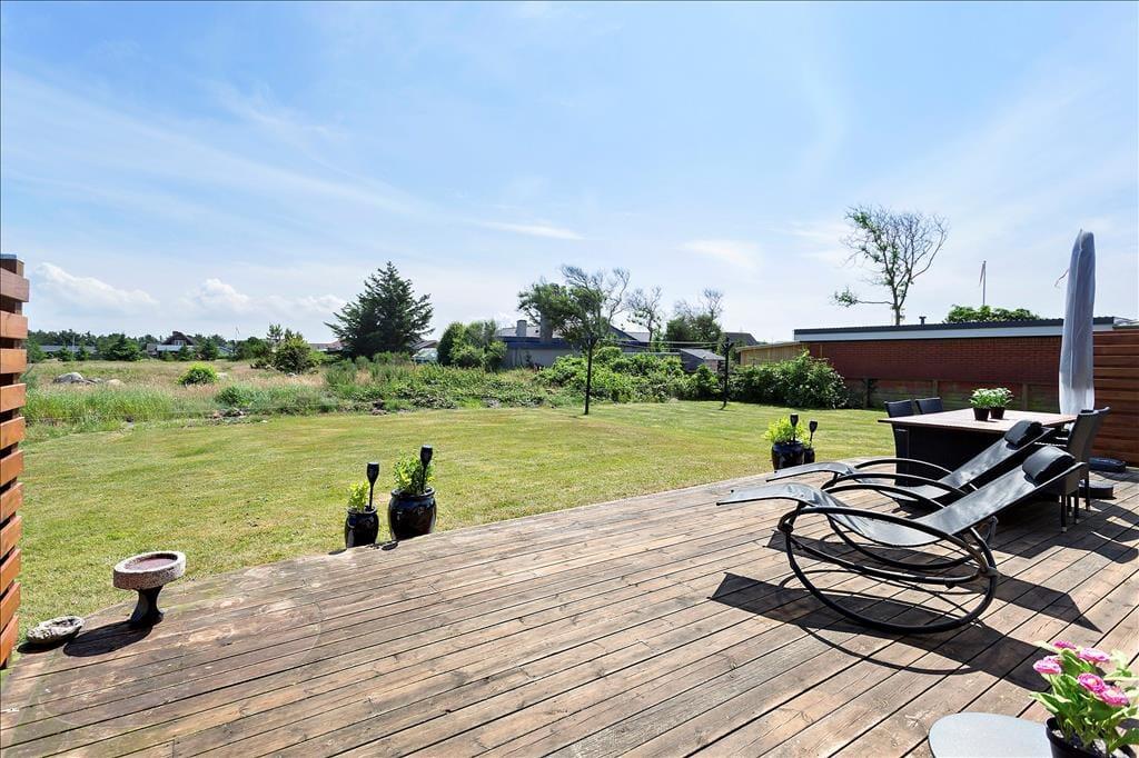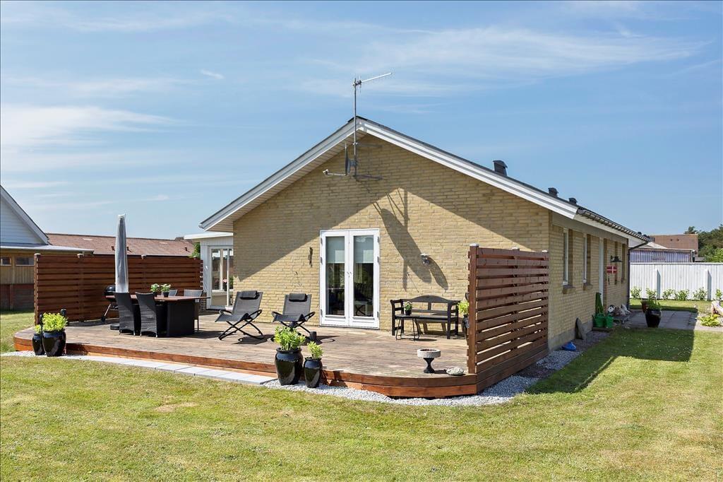 Den store have omkring huset er som skabt til udeliv. Her kan børnene boltre sig frit på græsplænen, mens de voksne slapper af på terrassen med en god bog eller en kop kaffe. Der er flere hyggelige kroge i haven, hvor du kan nyde solen dagen lang, og en del af terrassen er overdækket, hvilket gør det muligt at grille eller spise ude, selv hvis vejret viser sig fra sin mindre milde side. Den rolige beliggenhed for enden af en blind vej gør, at du kan nyde ferien i fuldkommen fred og ro, kun afbrudt af fuglenes kvidren og vinden i trætoppene.
