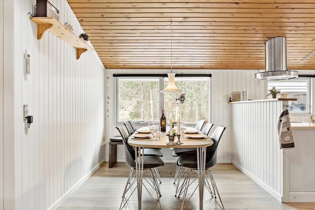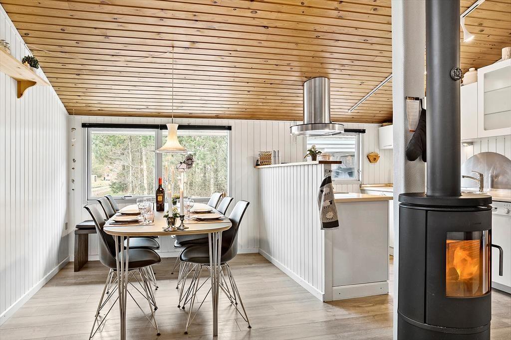 Dette hyggelige sommerhus emmer af varme og velvære og er ideelt til op til seks personer – også hvis familiens firbenede ven skal med. Huset er nænsomt renoveret i 2020, hvilket sikrer en moderne og indbydende atmosfære, uden at den klassiske sommerhuscharme går tabt. Indretningen kombinerer praktiske løsninger med hyggelige detaljer, og en varmepumpe sørger for et behageligt indeklima året rundt. Efter en dag fuld af oplevelser kan du slappe af foran brændeovnen eller forkæle dig selv med en afslappende tur i saunaen – perfekt til både kølige sommeraftener og vinterferier. Her er rammerne sat for hyggelige stunder med dem, du holder af.