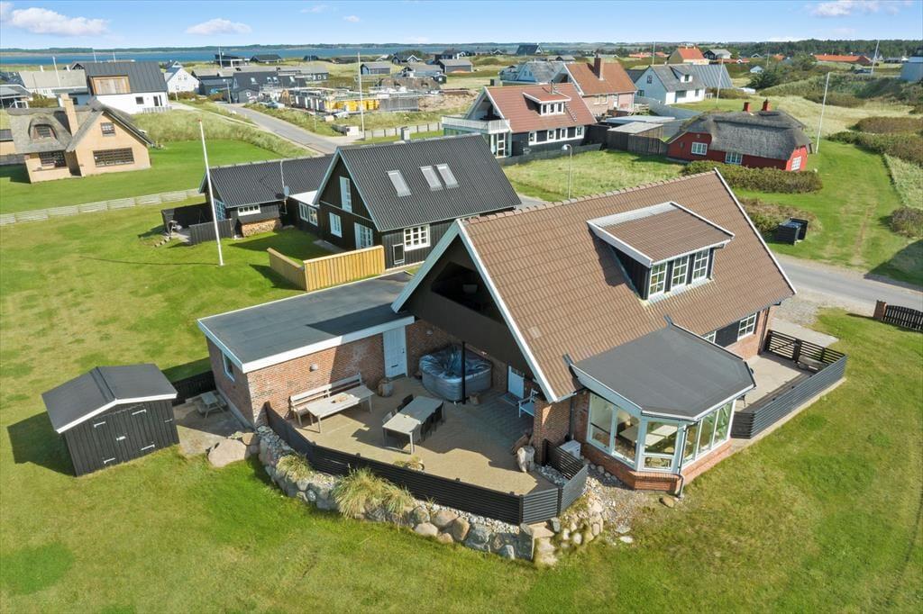 På Aalumvej 3 i Agger finder du dette skønne og rummelige sommerhus i 2. række fra klitterne, der tilbyder masser af hygge og luksus. Med smagfuldt indrettede rum og et dejligt udendørsområde med spabad, er rammerne sat for en ferie i afslappende omgivelser. Huset byder på både stil og komfort, og så ligger det helt perfekt, hvis du drømmer om naturoplevelser tæt på hav og fjord.