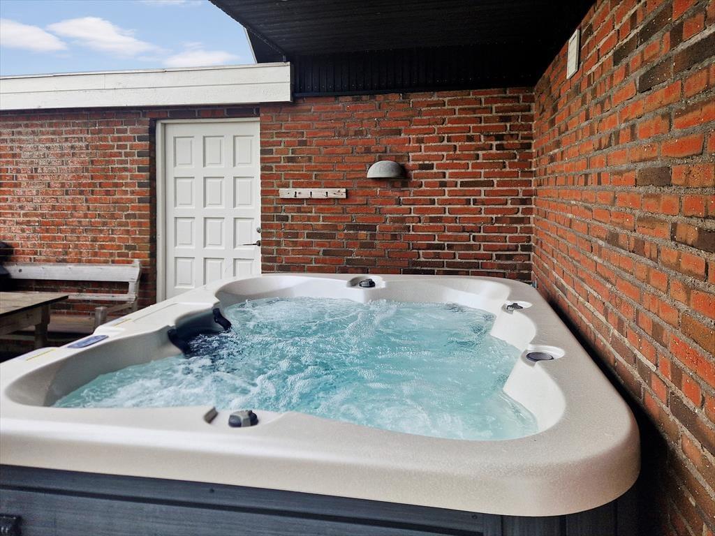 Udenfor åbner der sig et skønt og uforstyrret gårdmiljø, hvor du kan slappe af og lade roen falde over dig. Den lukkede terrasse sikrer privatliv og danner rammen om hyggelige stunder i solen eller ved grillen. Højdepunktet er dog uden tvivl det udendørs spabad, hvor du kan synke ned i det varme vand og nyde de stjerneklare aftener eller tage et forfriskende bad i udebruseren i løbet af dagen. Her er alt skabt for at nyde livet i det fri og skabe minder, der vil vare længe efter ferien er forbi.