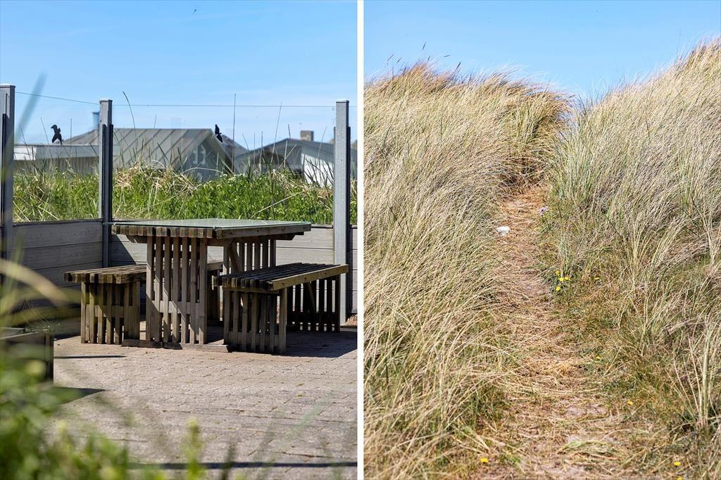 Træd ud i det fri og mærk naturens nærvær fra første sekund. På terrassen – hvor både åben himmel og overdækkede kroge giver mulighed for at nyde udendørslivet i al slags vejr – kan du følge med i klitternes spil i vinden og mærke stilheden fra Nationalpark Thy, der breder sig lige uden for døren. Her er det oplagt at nyde dagens måltider med udsigt til landskabet eller bare læne sig tilbage i en liggestol og lade blikket vandre. Den omkringliggende naturgrund er som skabt til leg, afslapning og måske en stille stund med en bog, mens solen går ned over Vesterhavet. For de morgenfriske venter en kort gåtur til stranden – og måske en dukkert, inden dagen for alvor begynder.