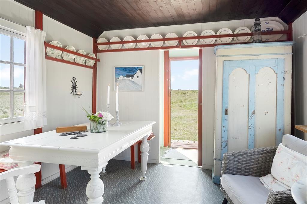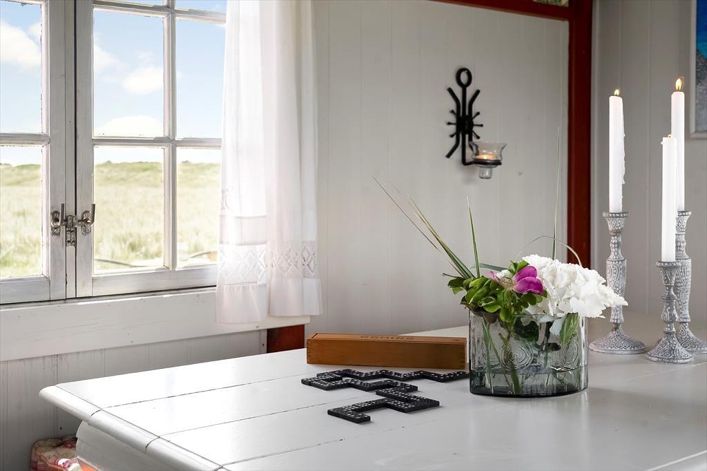 Sommerhus i Agger, Nordjylland, med plads til 2 voksne, 2 børn og 2 husdyr. Der er en hyggelig indretning.
