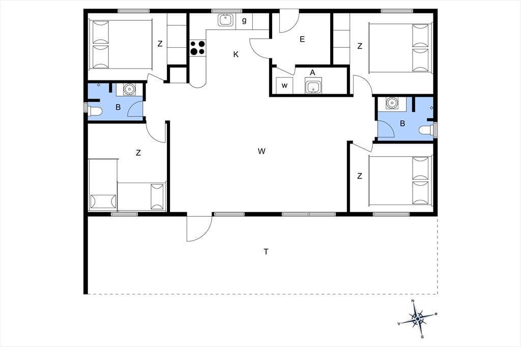 Træd ind i et lyst og indbydende sommerhus, hvor alt fremstår nyt, gennemtænkt og klar til at danne ramme om jeres næste ferie. Det åbne køkken-alrum smelter elegant sammen med den rummelige opholdsstue, så madlavning, spil, snak og afslapning går op i en højere enhed. Her kan du mærke, hvordan feriestemningen langsomt breder sig, mens du sætter dig til rette med en god bog i sofaen, eller samles med familien omkring spisebordet til lange måltider og gode grin. Den energivenlige luft-til-vand varmepumpe sikrer et behageligt indeklima året rundt – så du kan nyde din ferie uanset årstid. Husets planløsning er både praktisk og fleksibel, og gør det let for flere generationer eller vennepar at have hver deres soveafdeling og stadig nyde ferien sammen under samme tag.