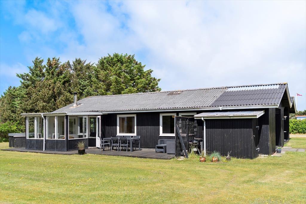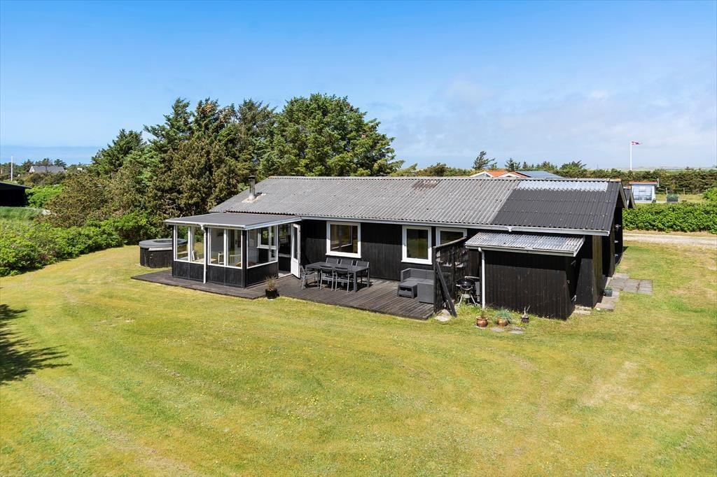 Husets udendørsområder er som skabt til at nyde det danske ferieliv. Den store terrasse indbyder til grillmiddage og solrige eftermiddage, mens vildmarksbadet tilbyder ren luksus og afslapning under åben himmel – måske endda med stjernerne som bagtæppe. For de aktive og friluftsglade er der også en udendørsbruser, perfekt efter en dag på stranden. Grunden omkring huset giver masser af plads til både leg og ro, og du kan altid finde et hjørne at nyde kaffen i, mens du lytter til havets brusen i baggrunden.