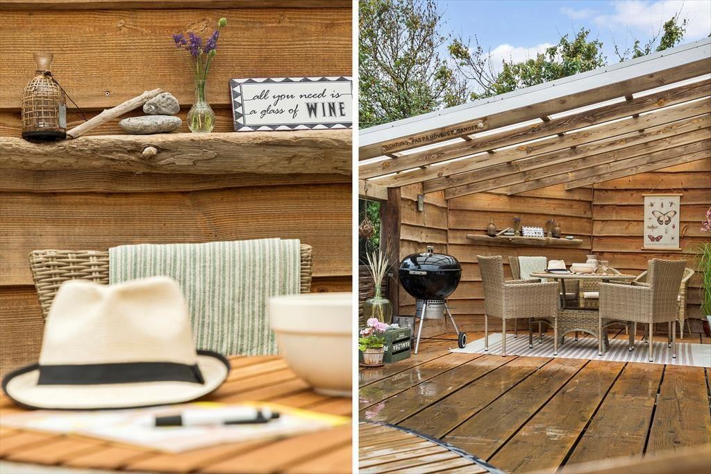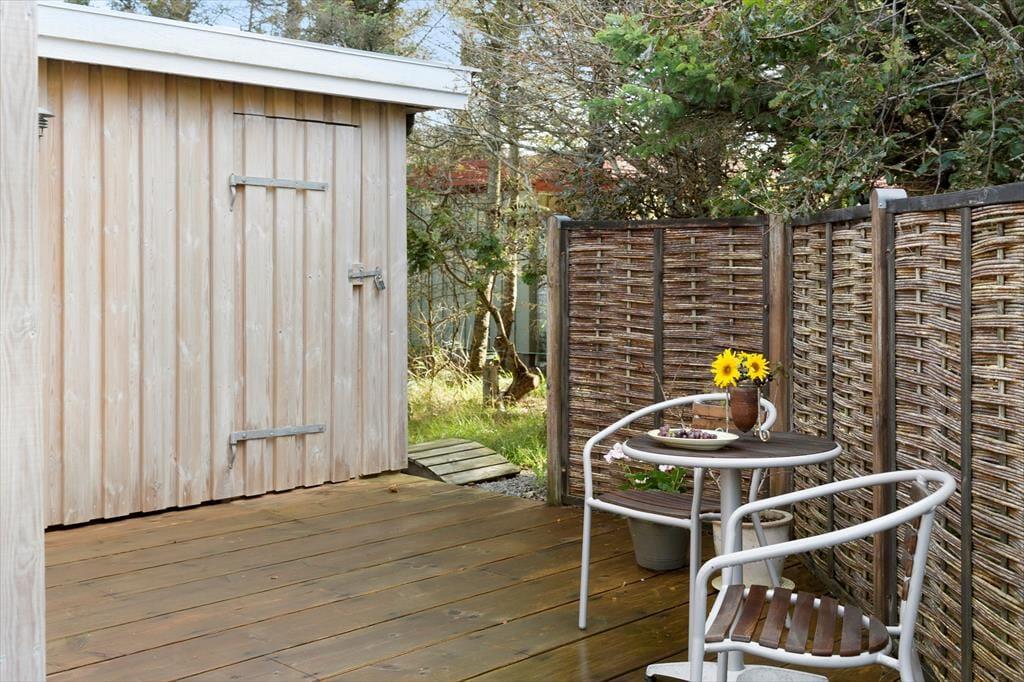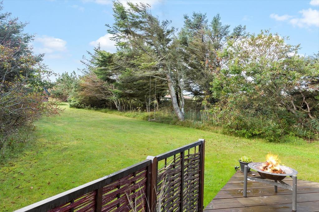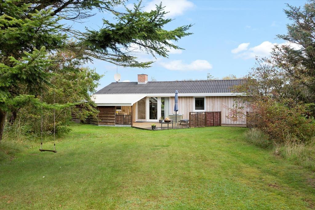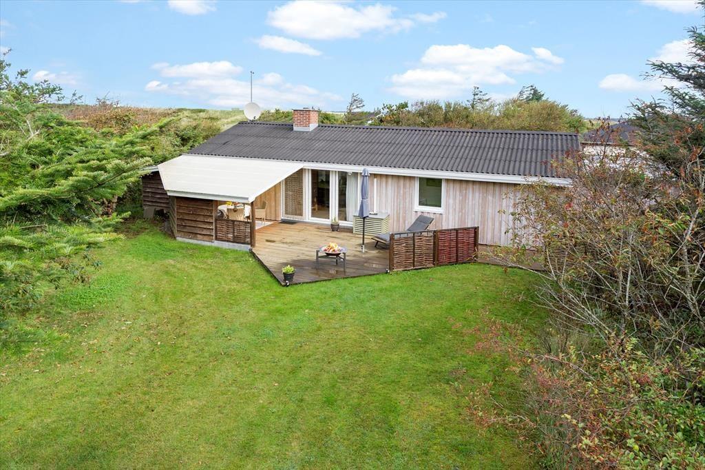 Udenfor venter den lækre terrasse, der giver jer de perfekte rammer til lange sommerdage og lune aftener i det fri. Start dagen med friskbrygget kaffe i solens første stråler eller nyd en lækker middag med lyden af naturen omkring jer. Terrassen er rummelig og veludstyret til afslapning, og grunden giver plads til både leg og fordybelse. Her kan børnene spille bold på græsset, mens du læser en god bog eller blot nyder roen i det grønne. Beliggenheden tæt på Vesterhavet betyder, at du nemt kan tage en kort gåtur til stranden og mærke sandet mellem tæerne eller dyppe fødderne i det friske vand.