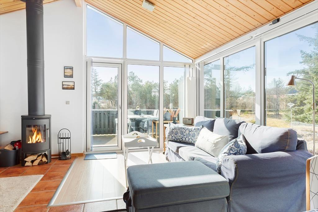Når du træder ind i sommerhuset, bliver du mødt af en lys og venlig indretning, der skaber en følelse af hjemlig hygge. Stuen er indrettet med komfortable møbler, hvor du kan slappe af efter en dag ved havet. På kølige aftener sørger brændeovnen for en skøn, knitrende varme, der indbyder til afslappede stunder med en god bog eller et spil kort. Køkkenet er åbent og funktionelt, så I let kan samles om madlavningen og nyde et godt måltid sammen ved spisebordet. Hele huset er velholdt og pænt indrettet, hvilket gør det til en dejlig ramme om jeres ferie.