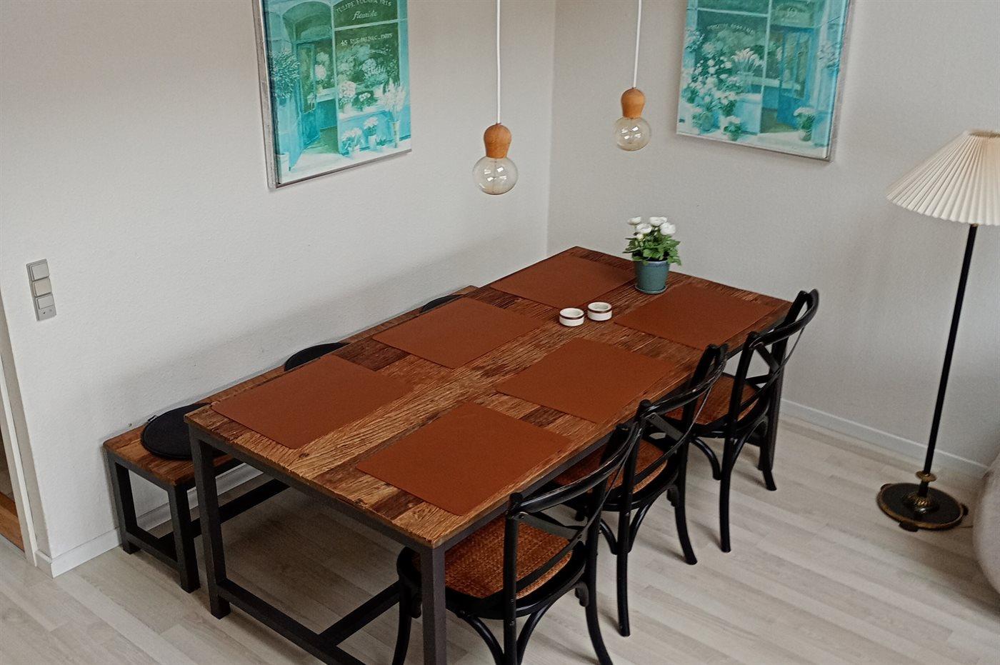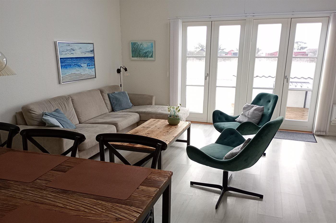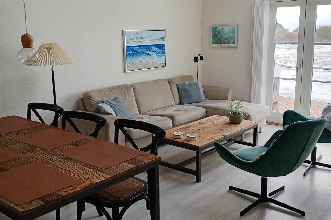 Denne lejlighed er en del af Agger Havn Feriecenter, som består af 101 ferieboliger. Den dejlige feriebolig, som ligger i første række med fjordudsigt, er på 60 m2 fordelt på 1½ plan og indrettet til 6-7 personer. Stueetagen indeholder en opholdsstue med bl.a. CD-afspiller, TV og fællesantenne. Desuden gratis, trådløs internetforbindelse til rådighed (computer skal medbringes). Stuen er kombineret med køkkenet, som er udstyret med kaffemaskine, emhætte, komfur, mikrobølgeovn opvaskemaskine og varmluftovn. Sovepladserne fordeler sig på 1 værelse med dobbeltseng (boksmadras), 1 værelse med 2 enkeltsenge (2 boksmadrasser) samt 1 dobbeltseng (120 cm boksmadras) med 1 overkøje (skummadras).