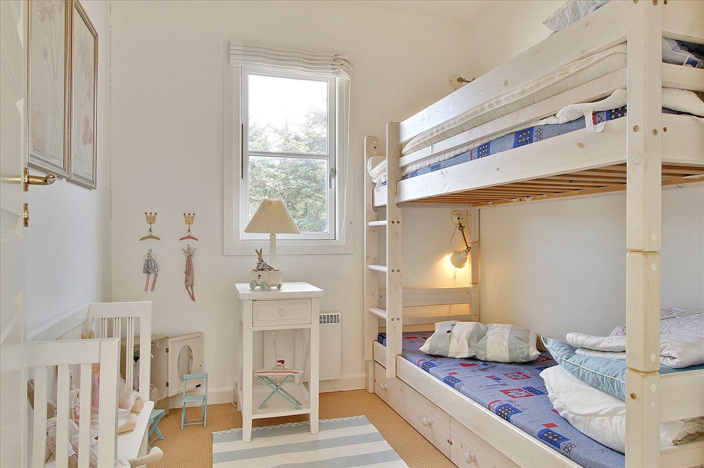 Der er i alt 3 soveværelser. Sovepladserne fordeler sig på: 2 sovepladser i dobbeltseng. 2 sovepladser i enkeltsenge. 2 sovepladser i køjeseng.