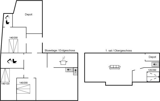Der er i alt 4 soveværelser. Sovepladserne fordeler sig på: 6 sovepladser i dobbeltsenge. 1 soveplads i sovesofa (enkelt). Derudover er der 1 stk. barneseng.