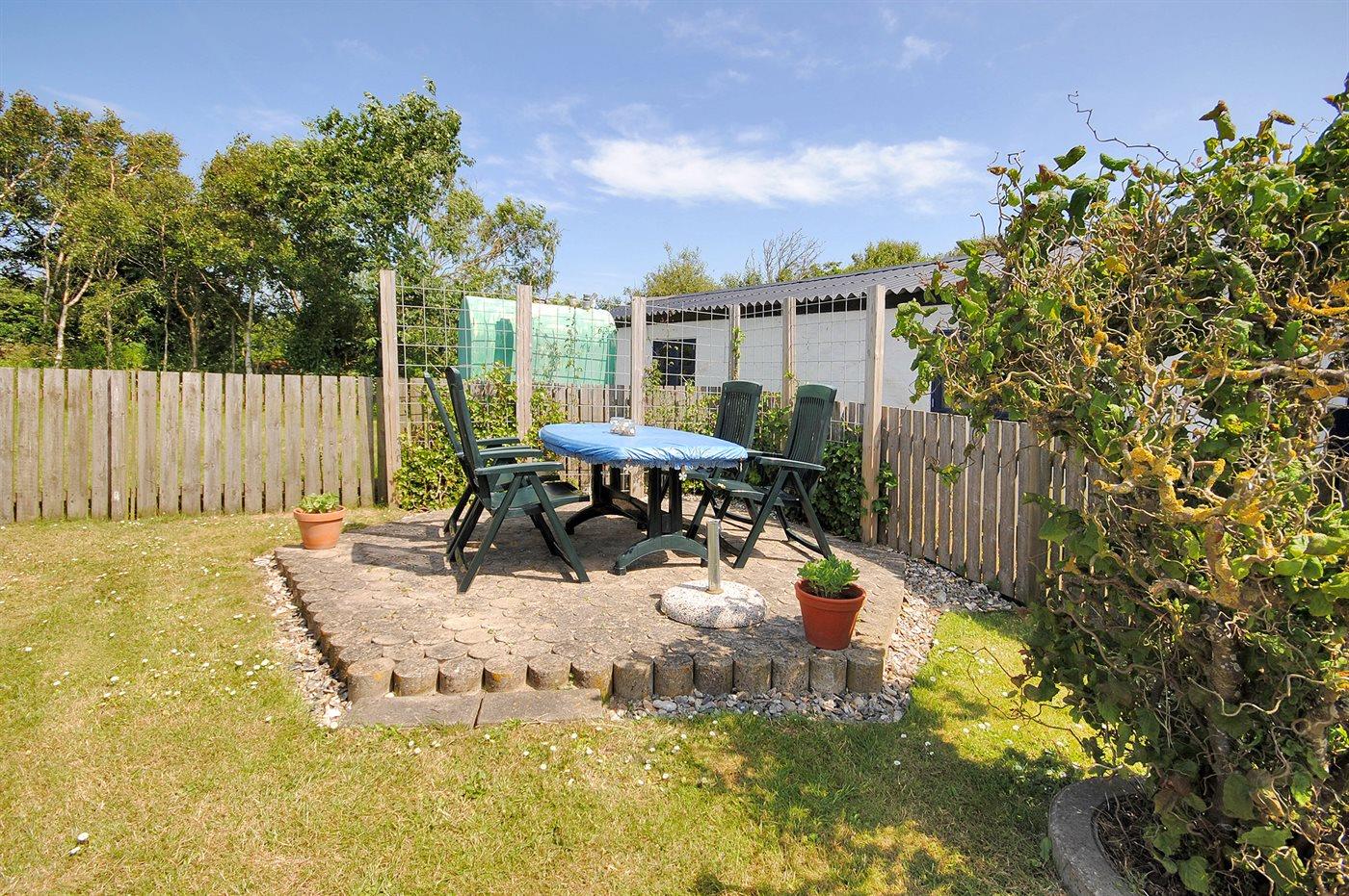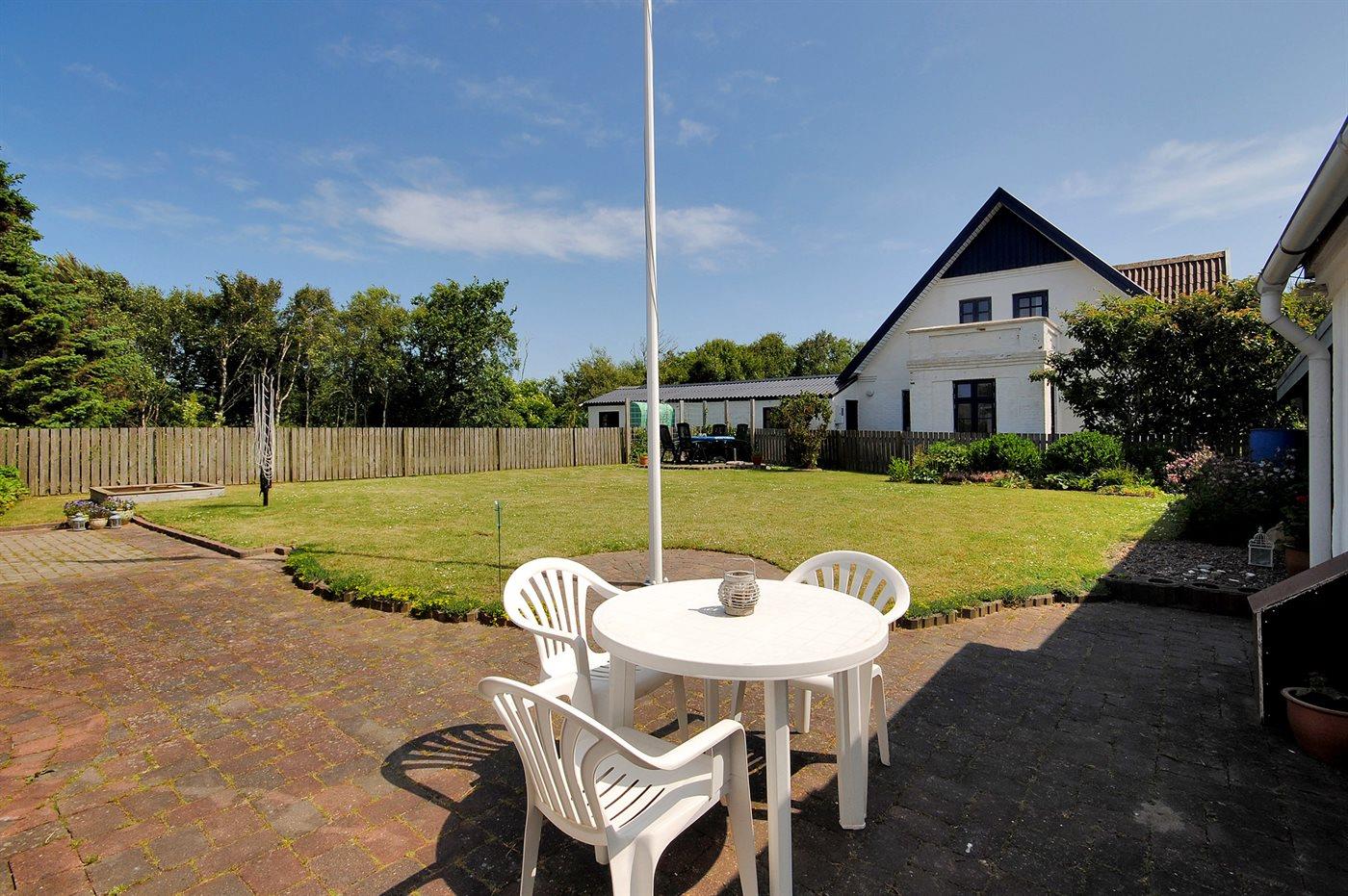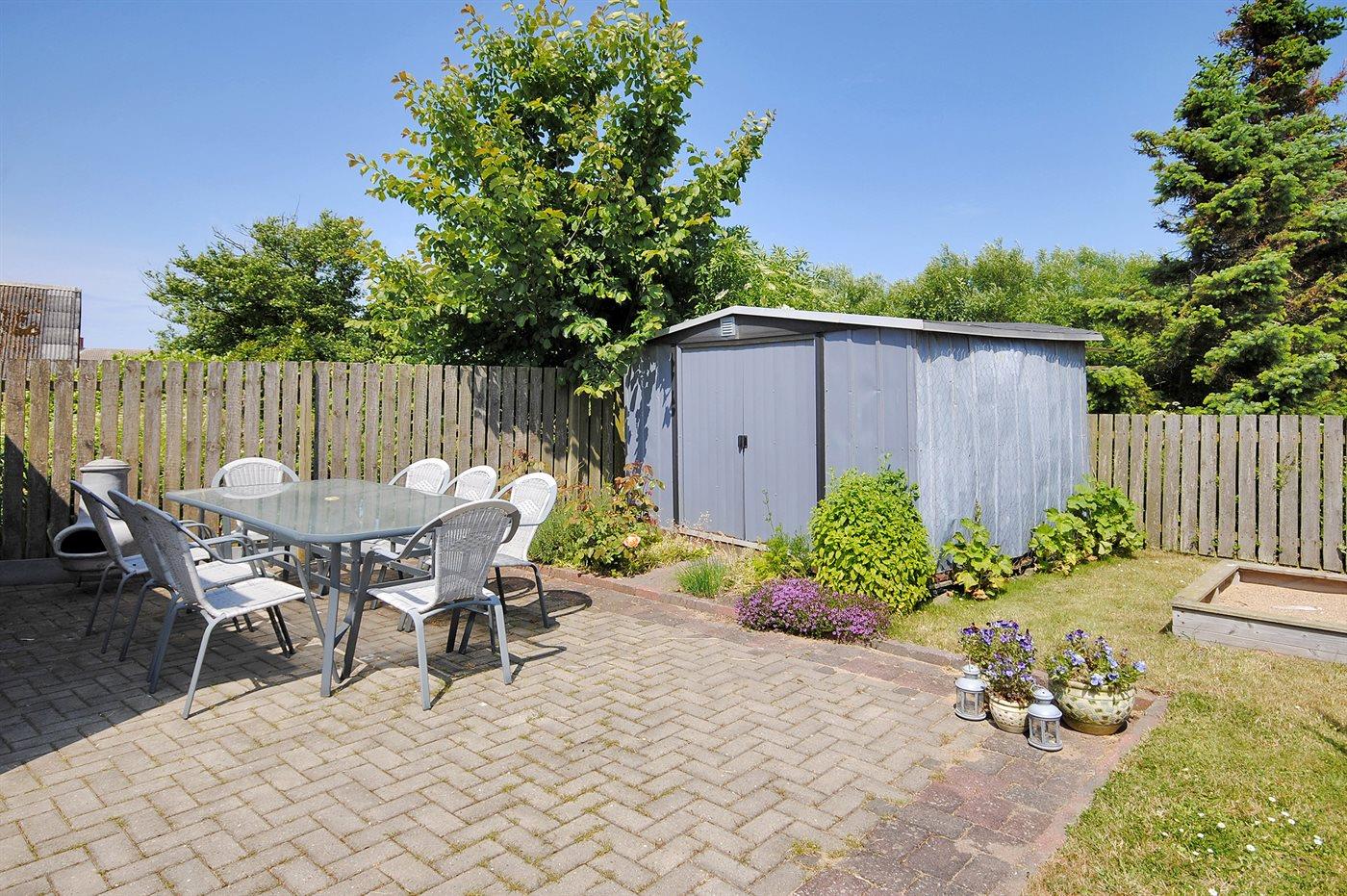 Ferieboligen er beliggende på en 494 m² stor havegrund. Grunden er indhegnet. Der er 3000 m til havet. Der er 40 m til fjorden. Nærmeste forretning er beliggende i en afstand af 2500 m. Der er en golfbane i en afstand af 8000 m. Til ferieboligen hører 28 m² terrasseareal. Der er redskabsrum. På lune aftener sørger en udendørs pejs for hyggelig stemning. Der er carport til rådighed.