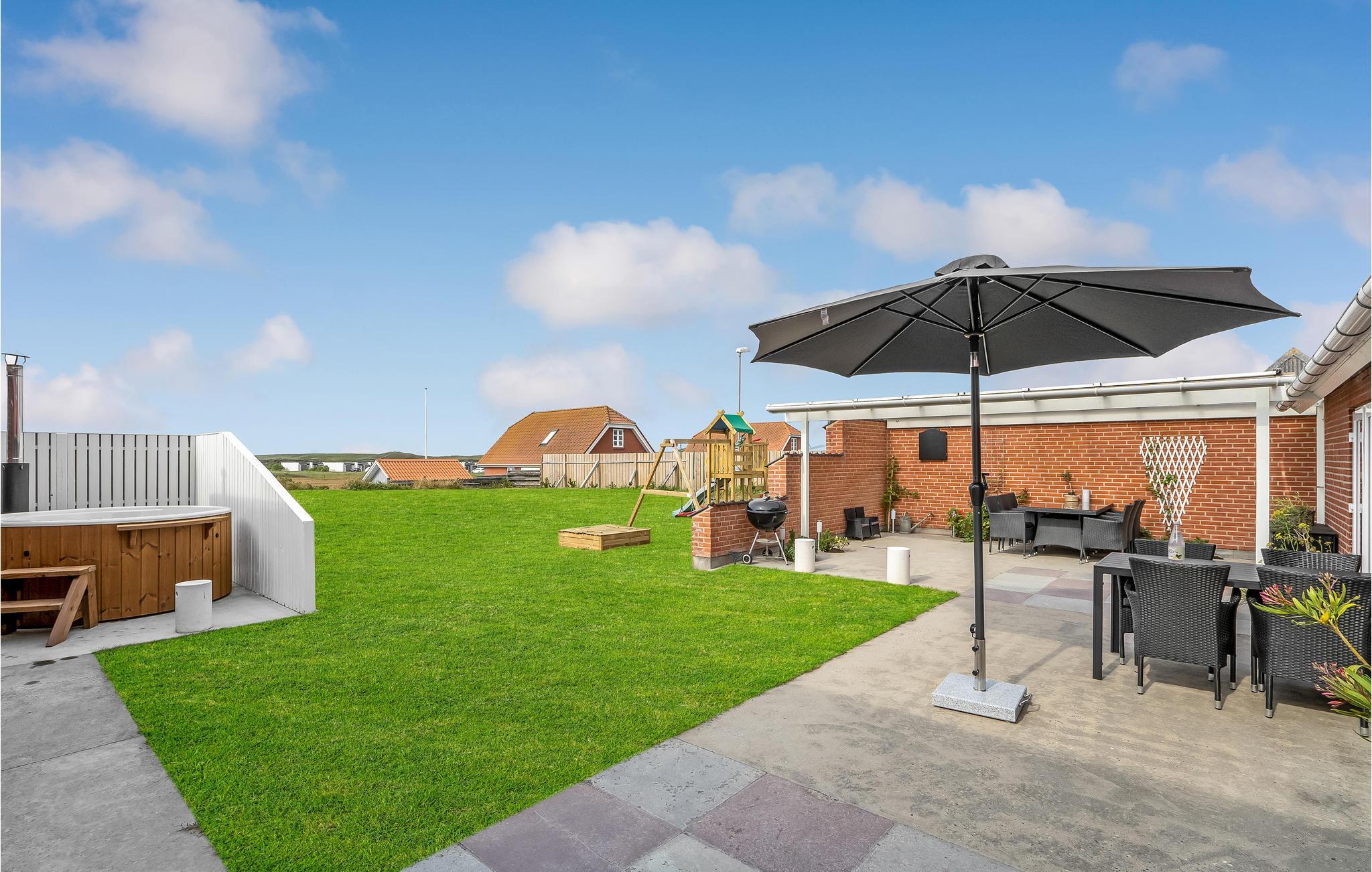 Rummeligt feriehus i Agger med boblebad, sauna og udsigt over klitter, tæt på Vesterhavet og naturskønne omgivelser.