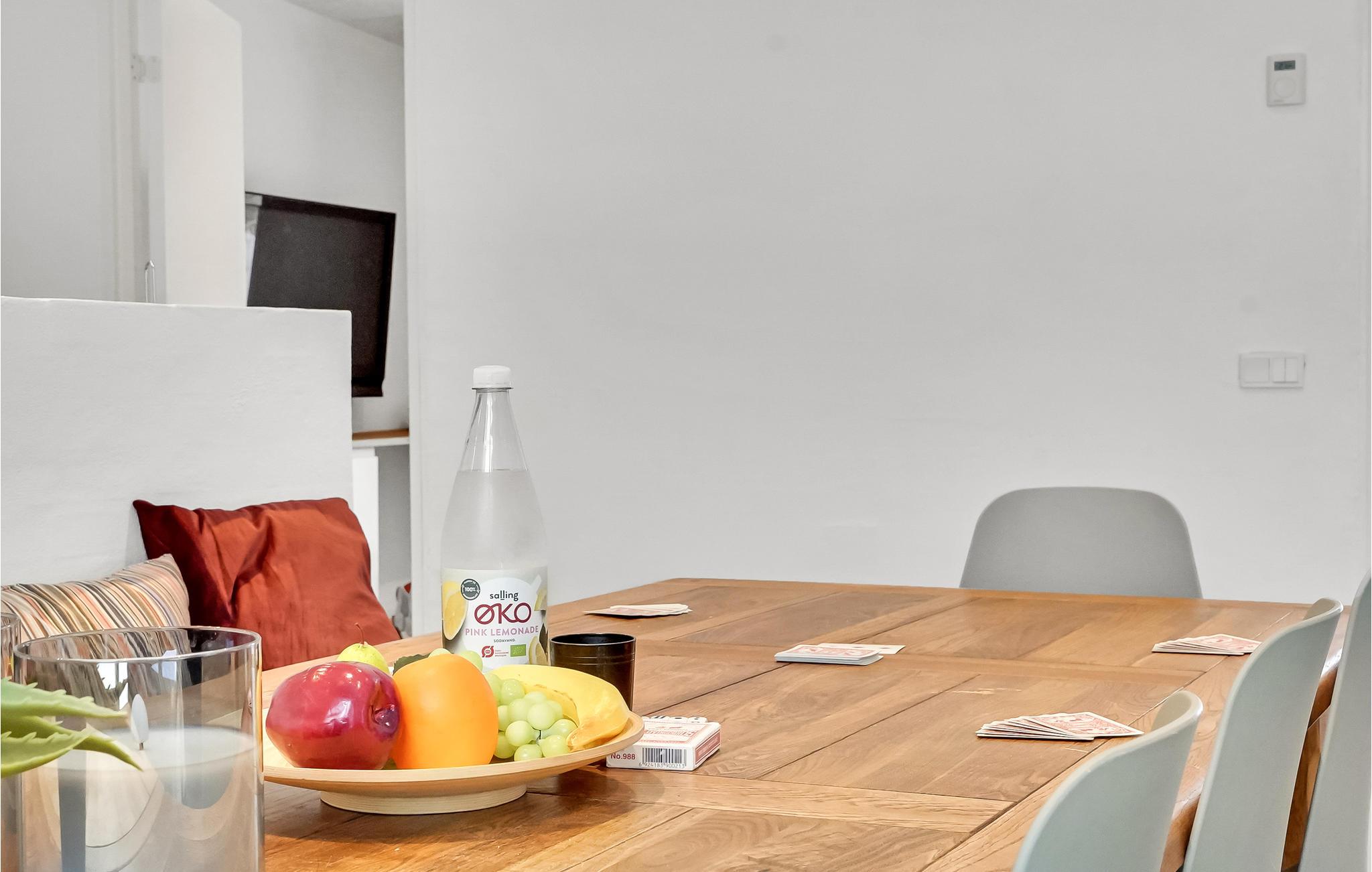 Velkommen til dette familievenlige og hjemlige sommerhus, der tilbyder jeres store familie et afslappende ophold. I den skønne stue, som er fyldt med naturligt lys fra de store vinduespartier, kan I nyde hinandens selskab fuldt ud. Efter aktive dage i Nationalpark Thy kan I svinge grydeskeerne sammen om aftenen, spille kort ved spisebordet eller lægge fødderne op i sofaen og se en god film. Både om sommeren og om vinteren kan I nyde terrassen og haven. I de varmere måneder kan I indtage jeres måltider på træterrassen og derefter se jeres børn spille volleyball. I kan også nyde ren afslapning og idyl i vildmarksbadet under stjernehimlen. Om vinteren er det skønt at bygge snemænd med børnene i løbet af dagen og nyde den friske luft.
