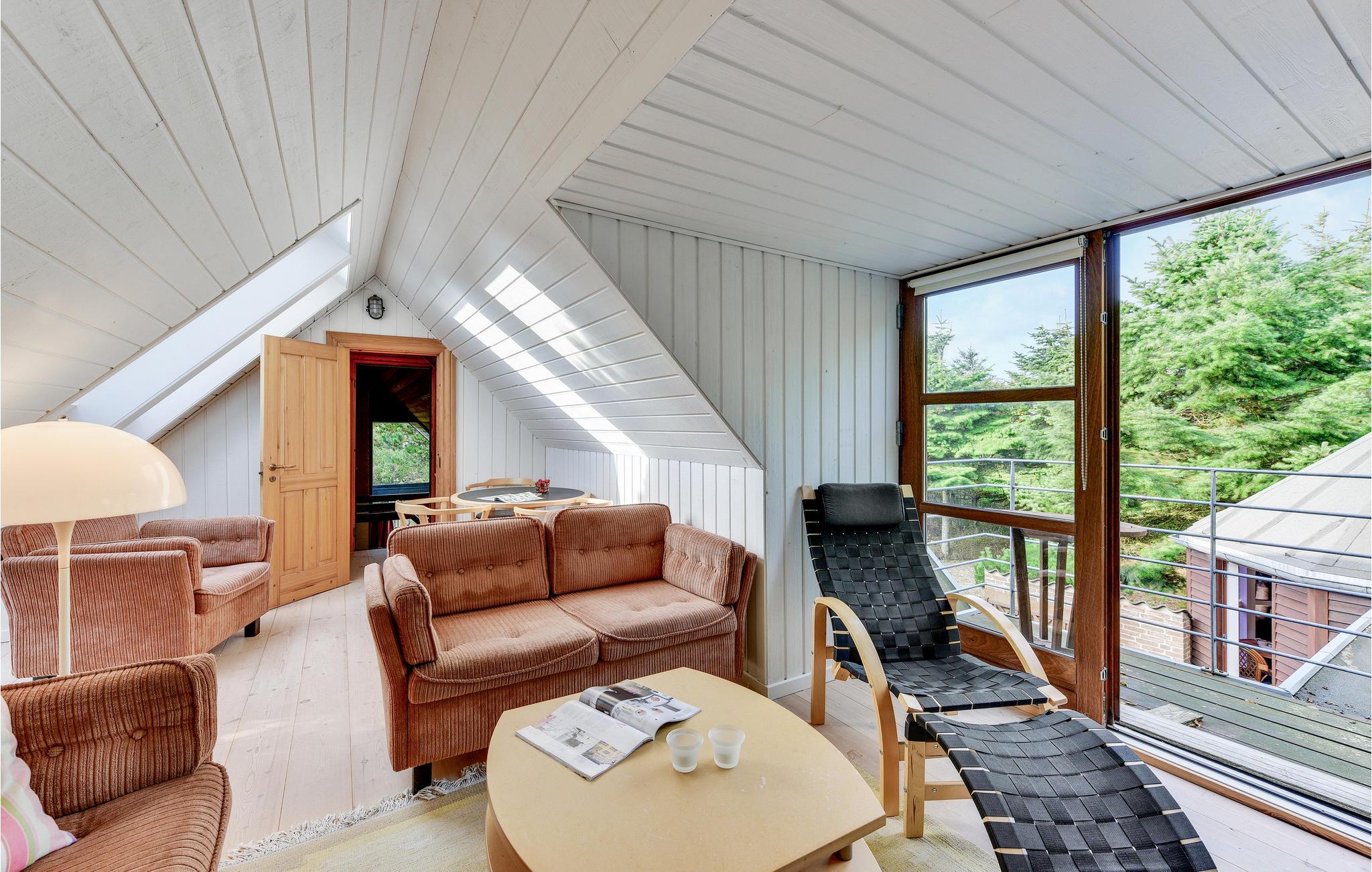 Her er masser af lys og højt til loftet. Saml familien om det lange spisebord til hyggelige middage eller sjove brætspil. Den unikke indretning byder på masser af hyggelige hjørner og kroge, hvor man kan nyde en god bog. I opholdsstuen finder I TV og chromecast, så underholdningen er sikret, hvis vejret skulle drille. Slap af og kom helt ned i gear i saunaen efter en tur i spabadet, hvorfra I kan nyde udsigten til den smukke naturgrund, der omgiver huset.