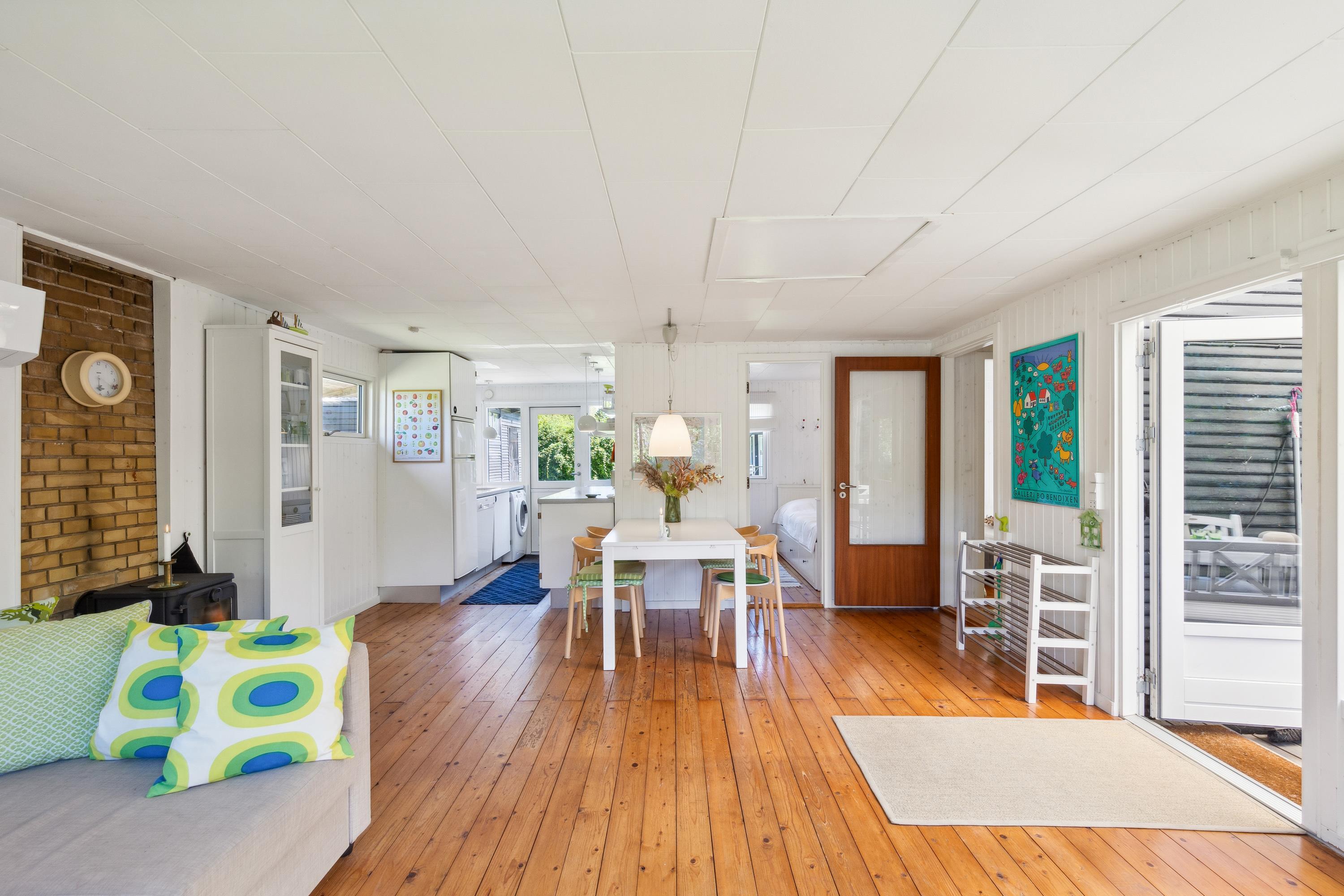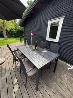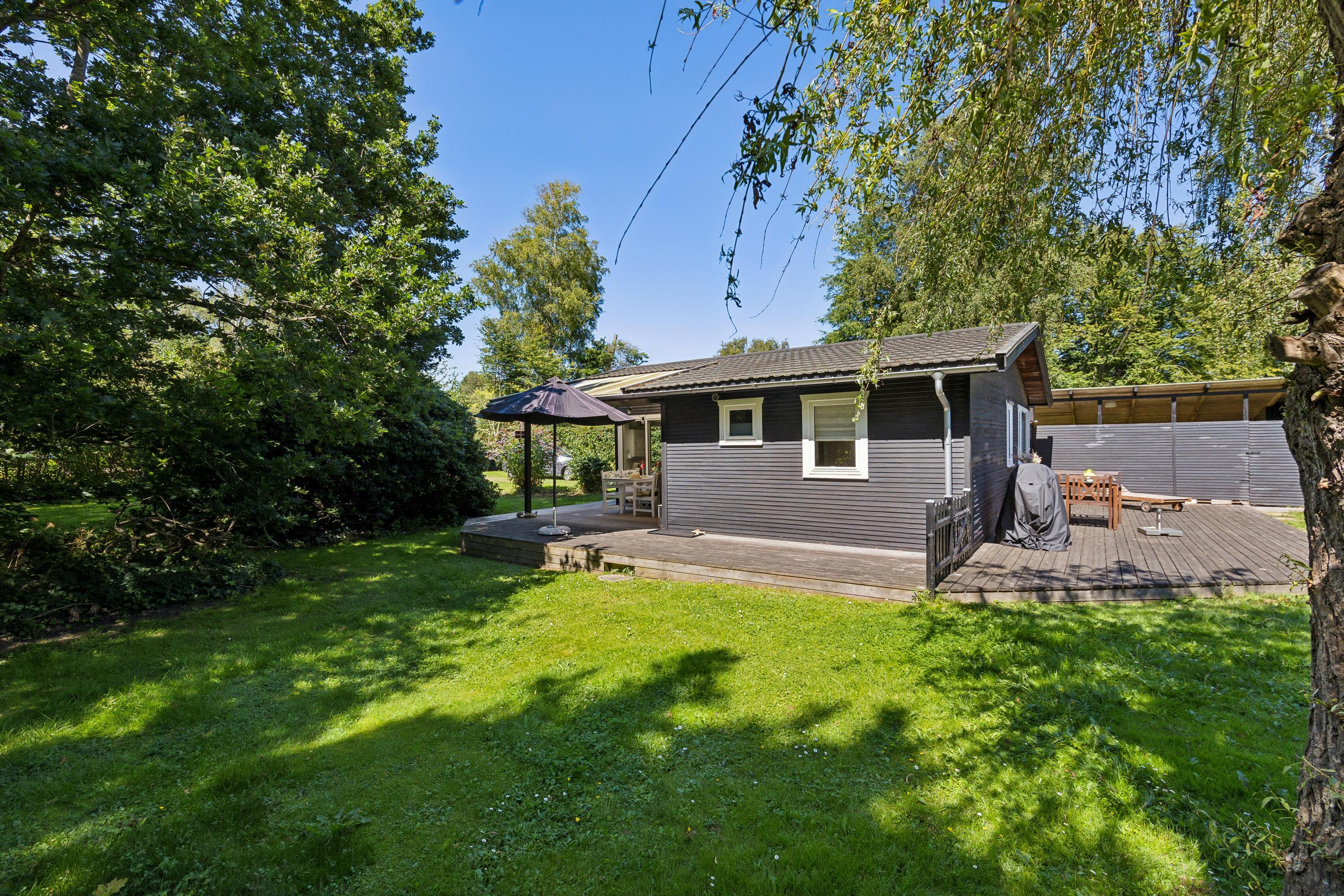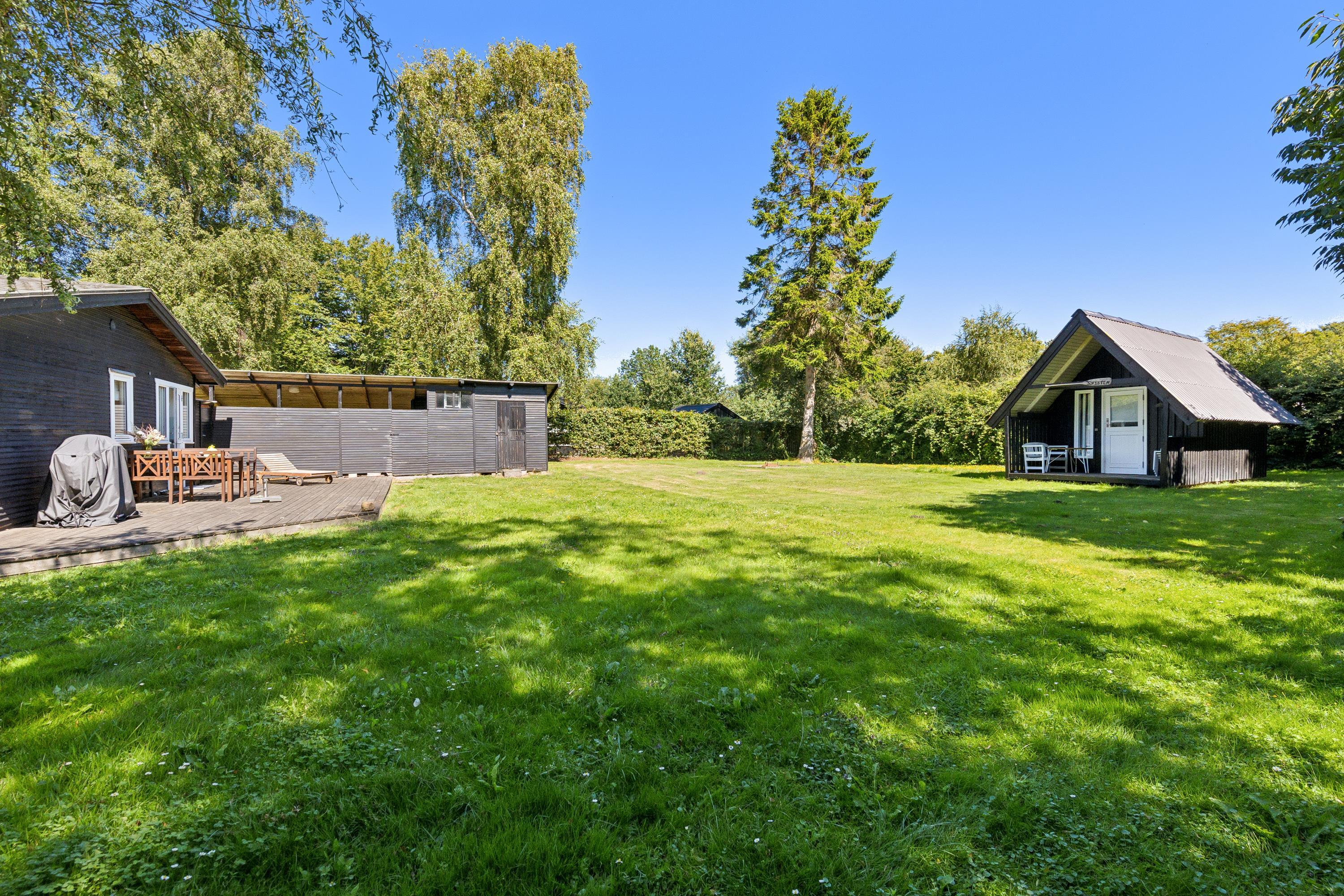 Hyggeligt sommerhus tæt på Ahl Strand med brændeovn, to terrasser og stor græsplæne – perfekt til afslapning og udendørs aktiviteter.