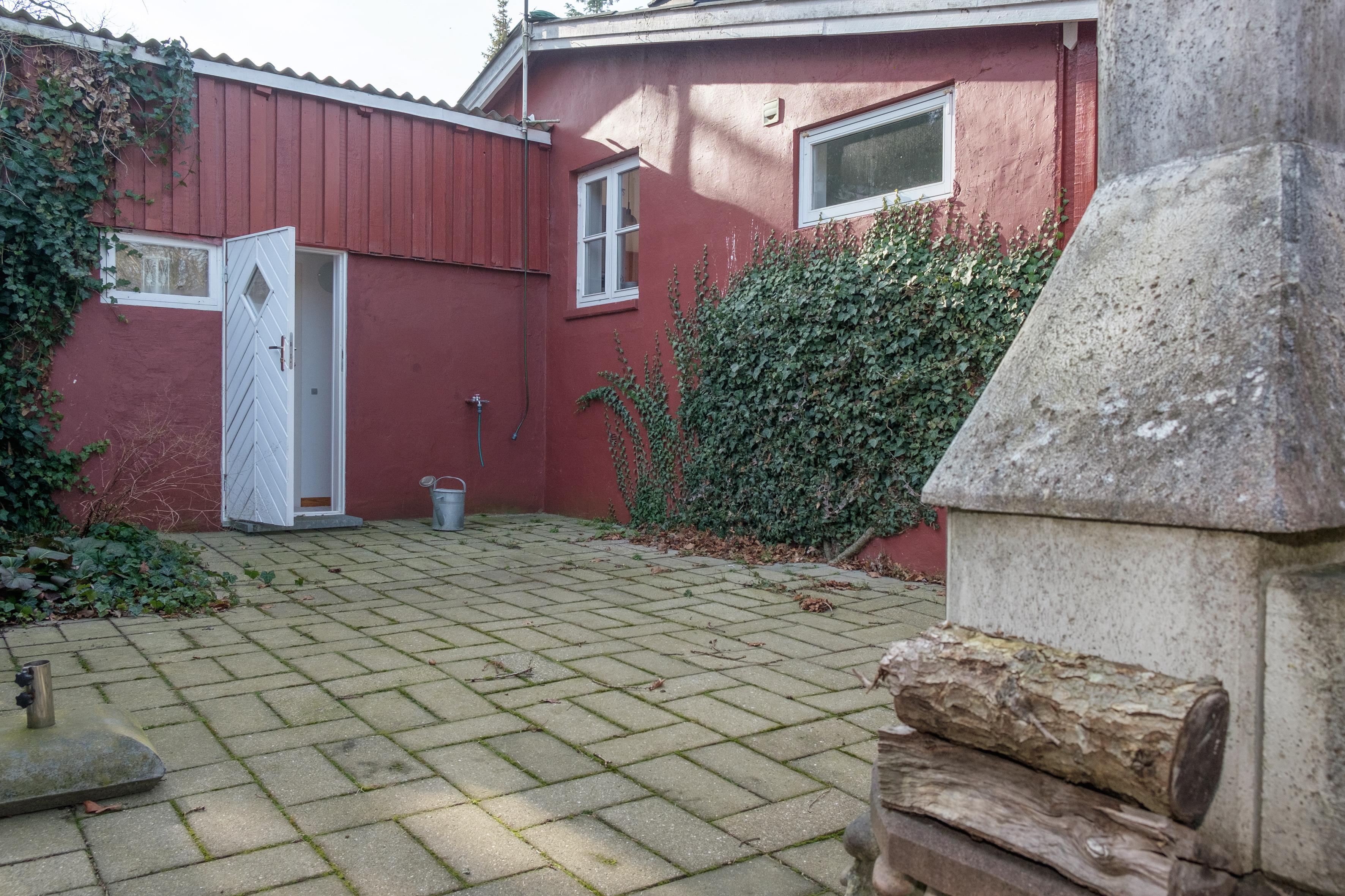 Hyggeligt ældre hus i traditionel stil beliggende på stor træbevokset grund bare 500 meter fra børnevenlig sandstrand. Huset er løbende moderniseret og fremstår lyst og velindrettet med et stænk af romantik og nostalgi. God, afskærmet terrasse med grill, pejs, havemøbler, liggestole og parasol.
