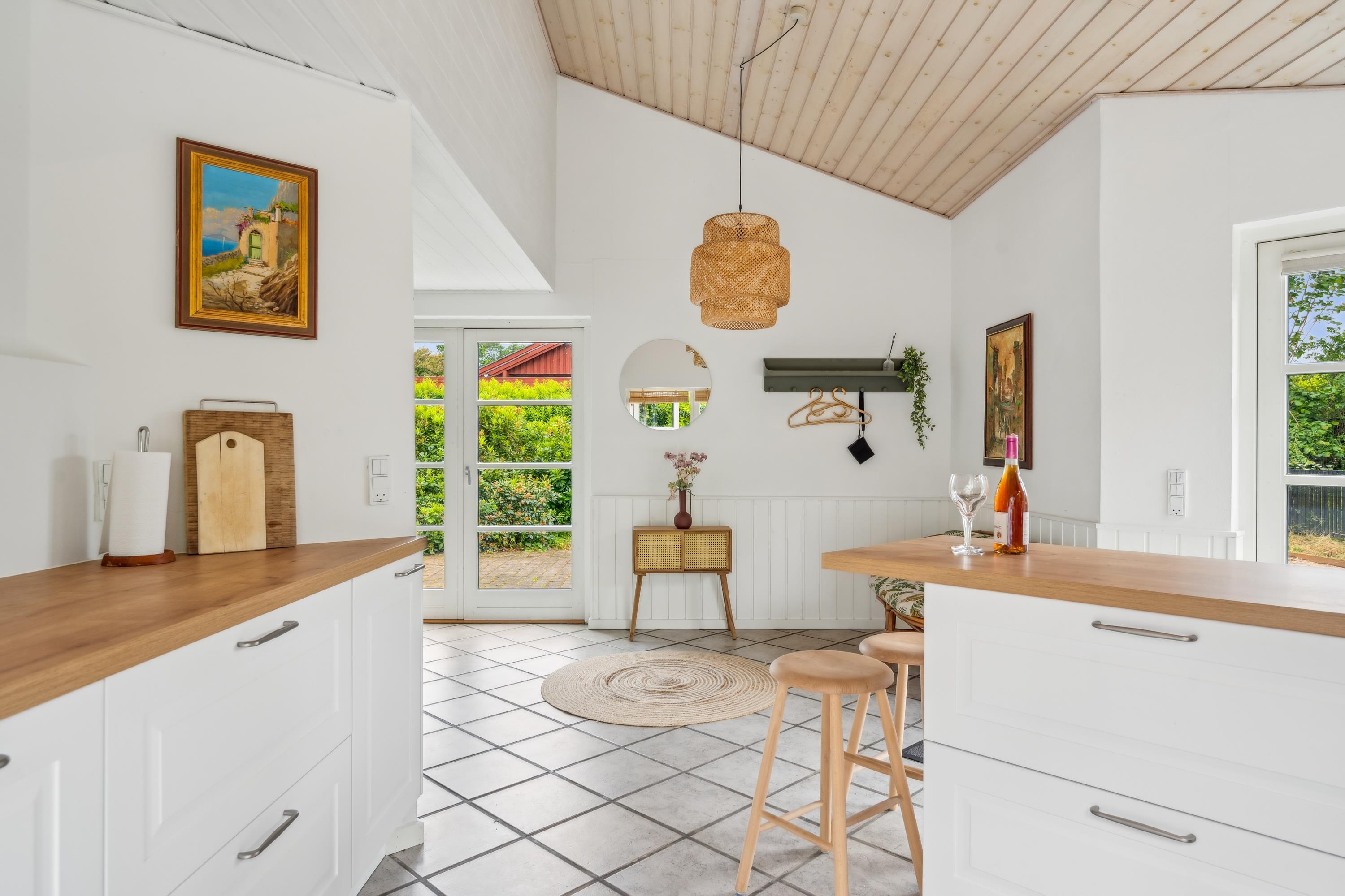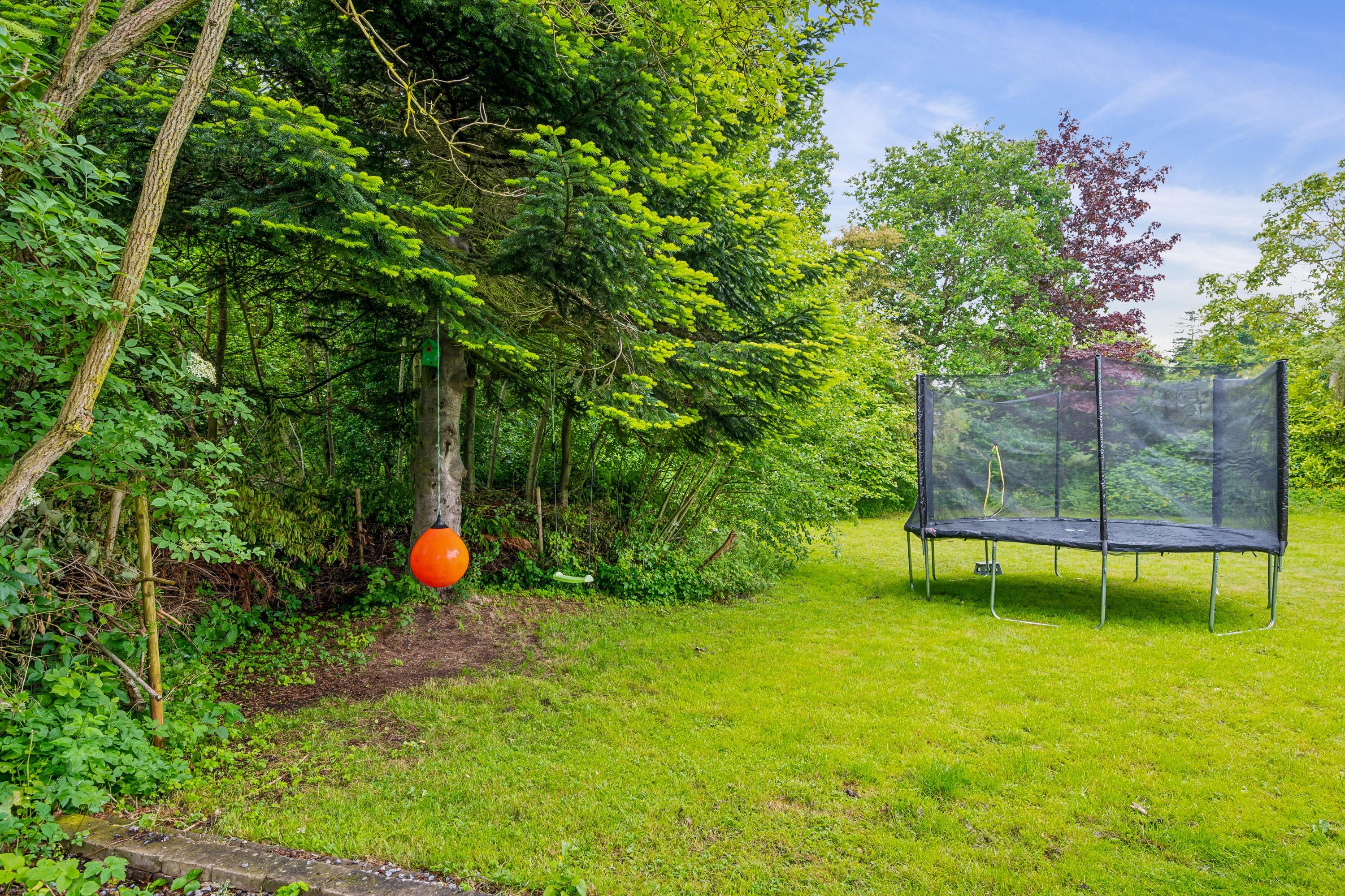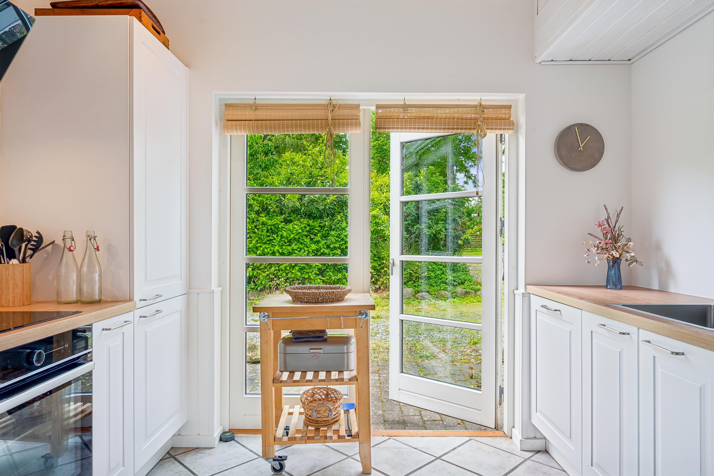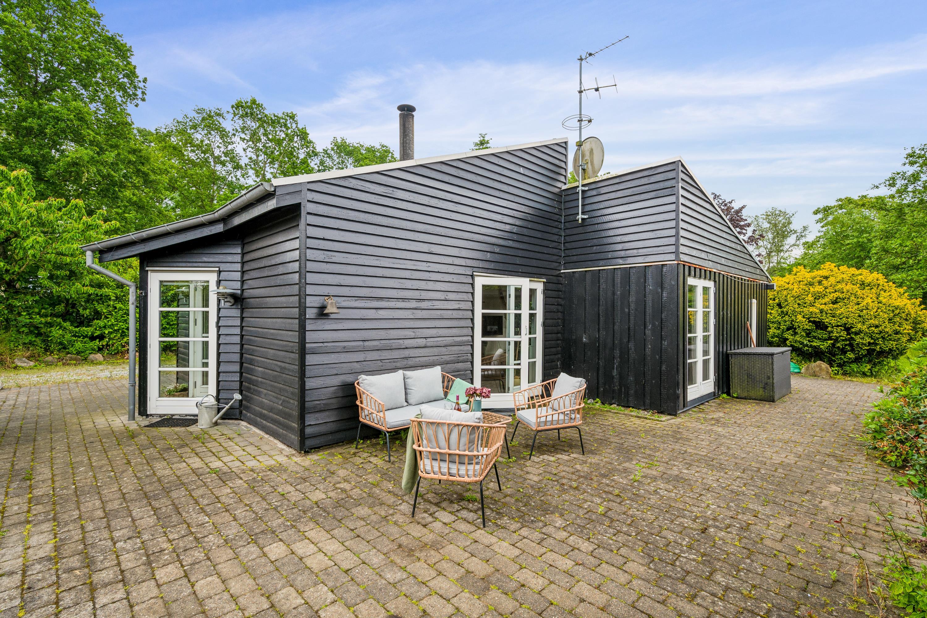Hyggeligt feriehus nær Ebeltoft med moderniseret køkken, vildmarksbad og børnevenlige faciliteter på stor naturgrund.