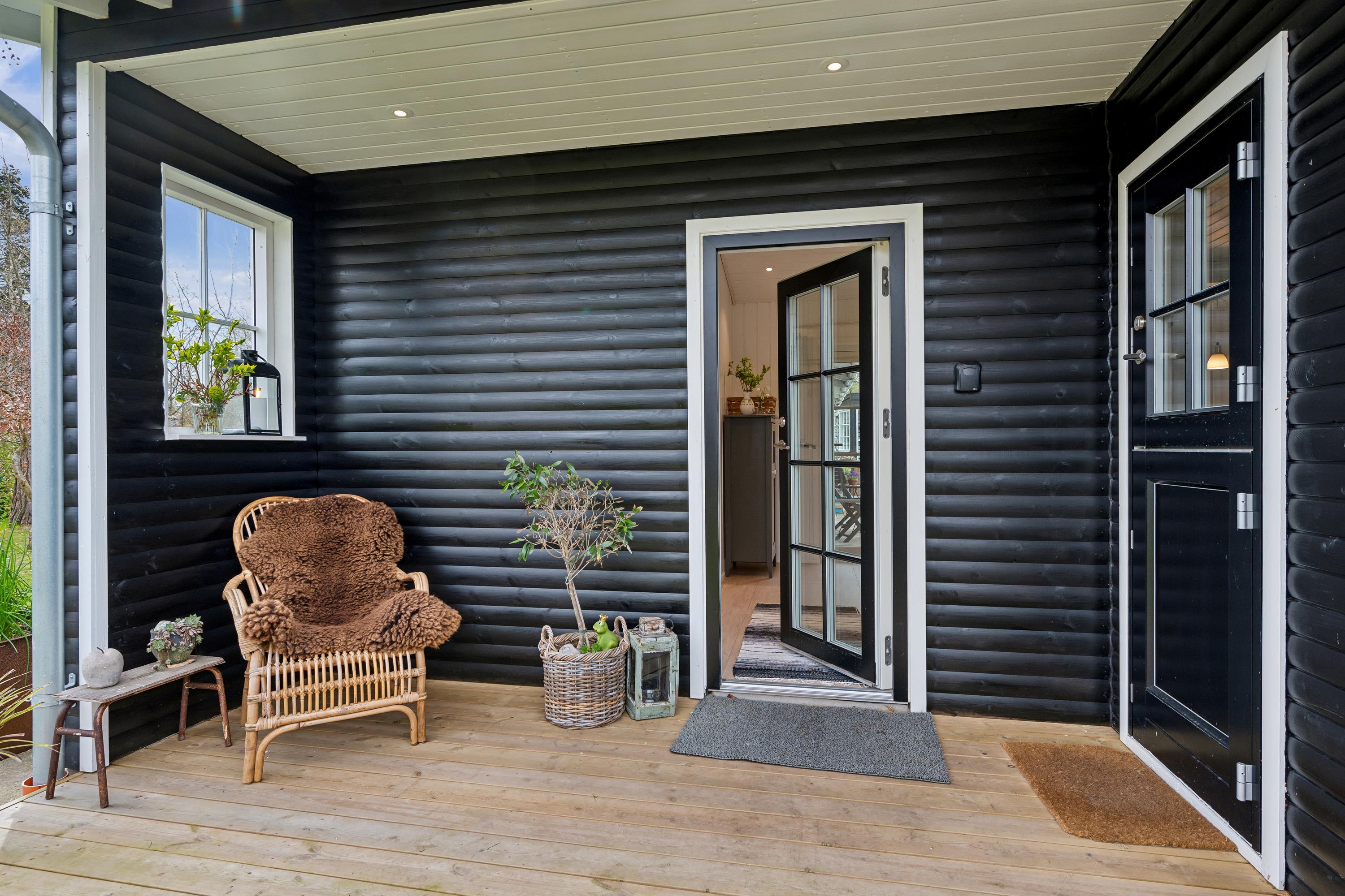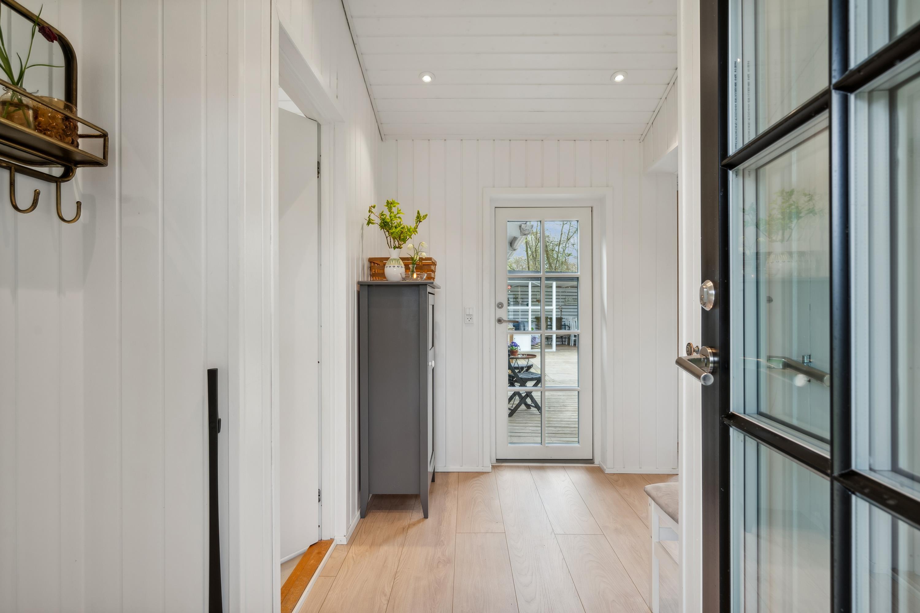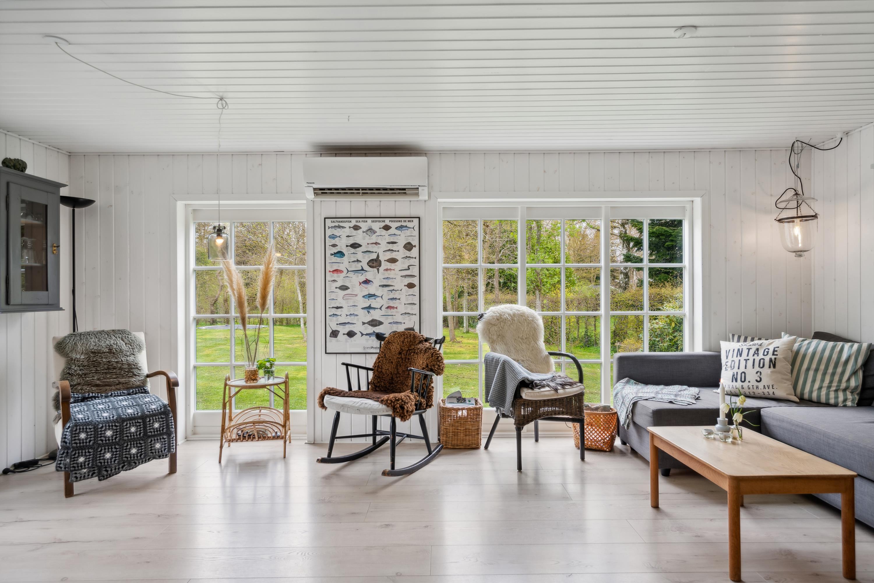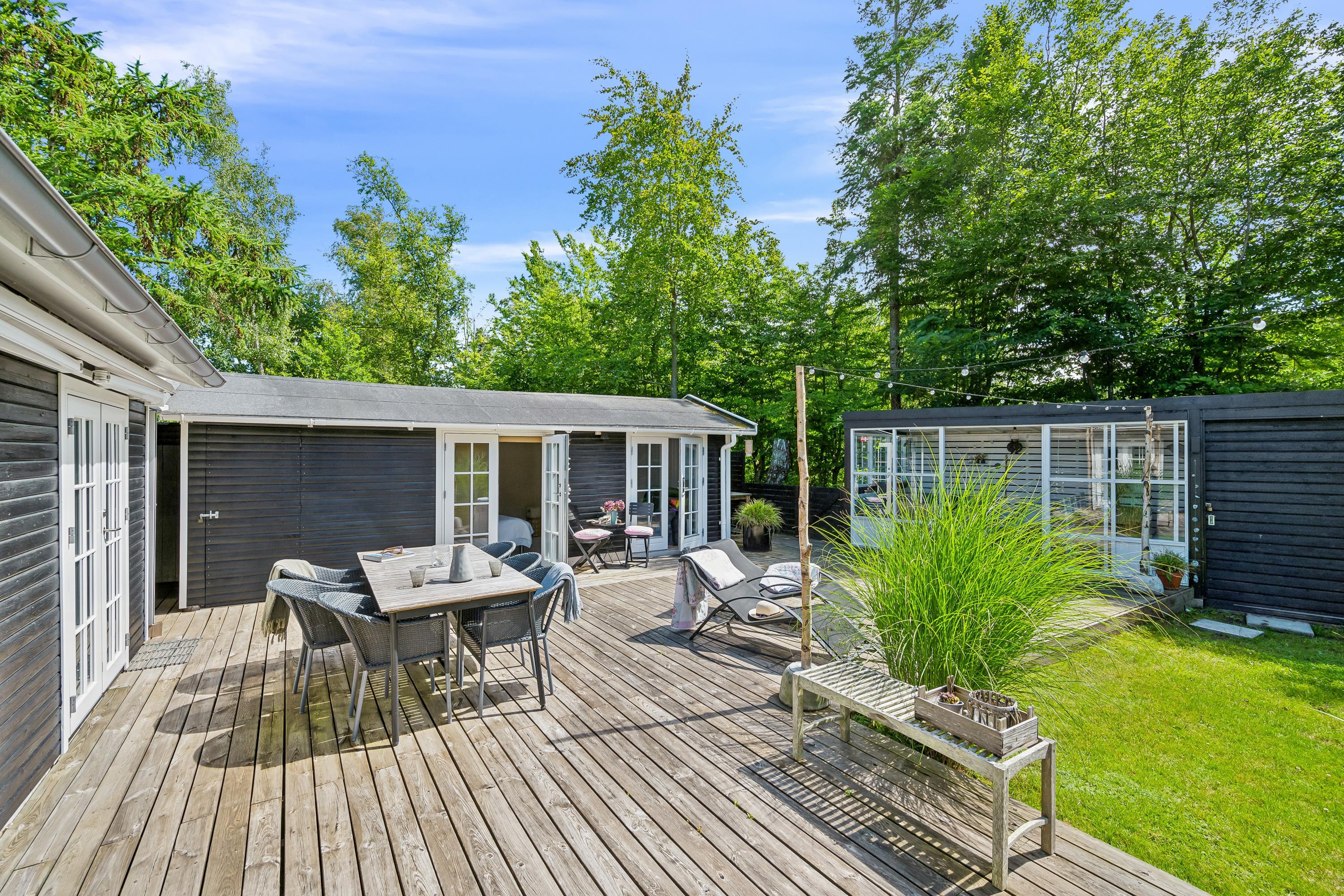 Hyggeligt sommerhus nær Ahl Strand med terrasse, udestue og stor have til leg og afslapning.
