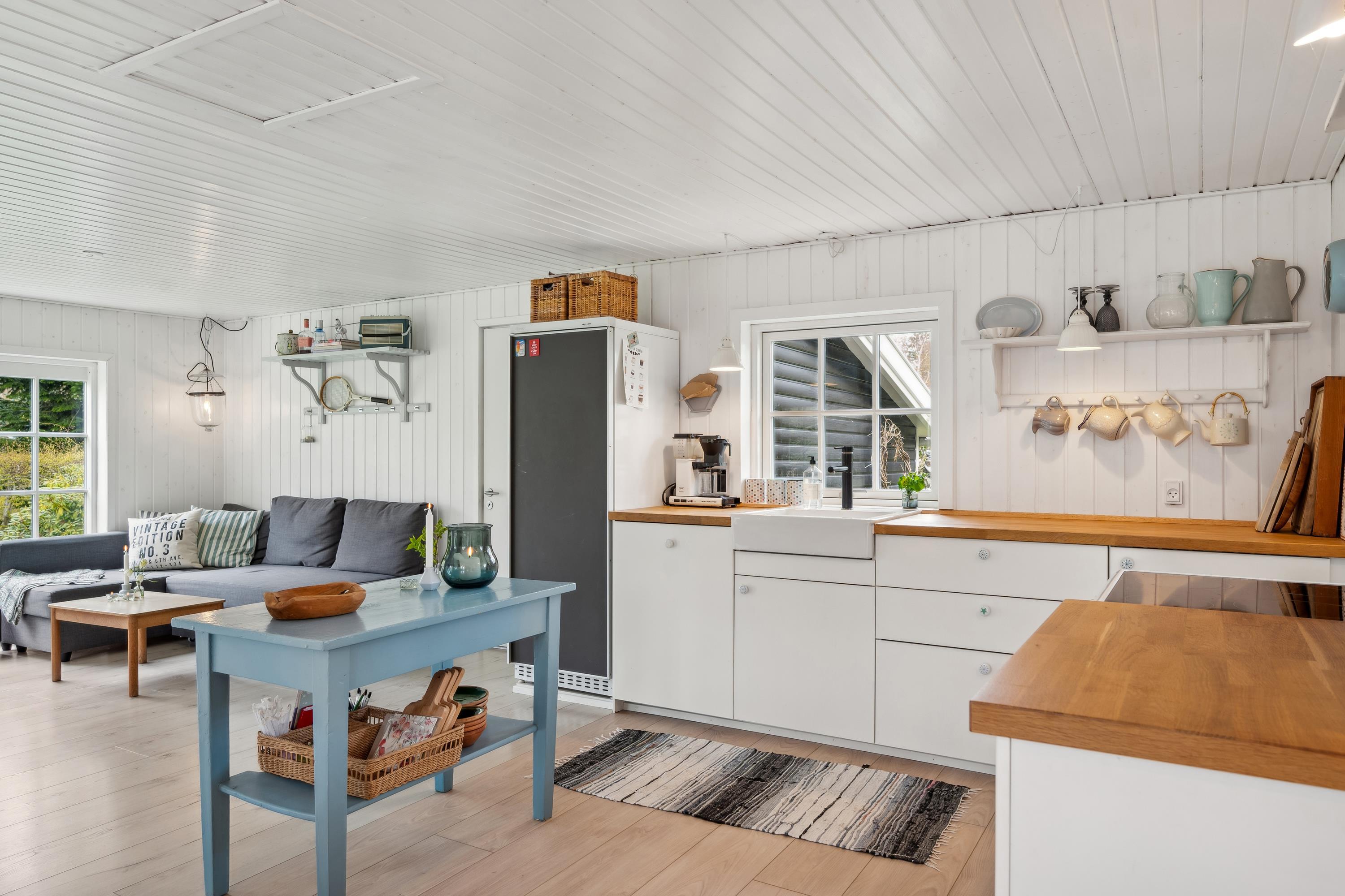 Allerede når man åbner døren og træder ind i entreen, fornemmer man den ægte sommerhusstemning der er i dette hus.Her finder man en hyggelig stue med brændeovn og varmepumpe. Herfra er der udgang til det store terrasseareal med havembler. I forbindelse med stuen finder man det funktionelle køkken med b.la. opvaskemaskine. Skønt badeværelse med bruseniche og gulvvarme. Stort soveværelse med en dobbeltseng samt en enkeltseng. Derudover er der to skønne annekser ved terrassen, hver med en dobbeltseng. Ved terrassen finder man også den hyggelig indrettede udestue med spiseplads, så man i alt slags vejr kan side ude og nyde de skønne omgivelser. Mellem hovedhuset og anneks er der en udebruser. Huset er beliggende på en virkelig skøn grund med stor græsplæne, velegnet til leg og boldspil og udendørsaktiviteter. Her er der også en trampolin og bålsted. Er man flere familier afsted, som gerne vil være sammen, så udlejer vi Egernstien 15- 18 og 20 også. Huset er beliggende 5 min gang fra en skøn sandstrand