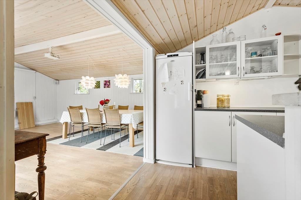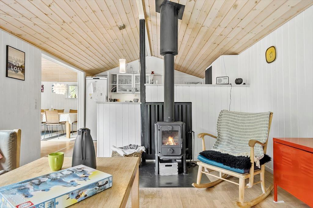 Træd ind i et charmerende sommerhus, hvor hygge og funktionalitet går hånd i hånd. Med 110 m² indbyder huset til afslapning og samvær for op til syv personer. Tre lyse soveværelser og to badeværelser sikrer komfort for hele familien eller vennegruppen. Det åbne køkken og stueområde er ideelt til fælles måltider og hyggelige stunder. Brændeovnen tilføjer ekstra varme og stemning på kølige aftener. Huset er løbende moderniseret og fremstår lyst og velindrettet. En varmepumpe, der både kan køle og varme, gør det let at tilpasse temperaturen selv på varme dage.
