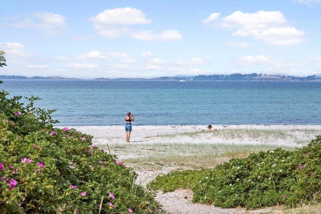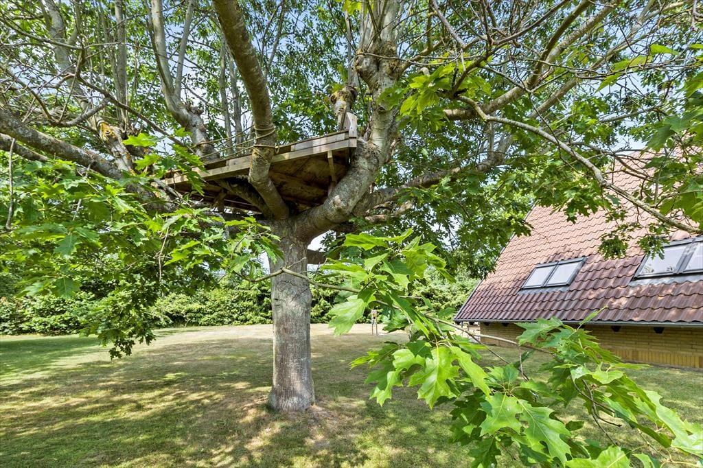 Oplev den store, uforstyrrede naturgrund, der er omkranset af træer, og som skaber et fristed for leg og aktiviteter. Den store græsplæne indbyder til sjov, og med kun 300 meter til den børnevenlige badestrand er der rig mulighed for at tage en dukkert. Den dejlige terrasse på husets bagside giver et godt overblik over haven, hvor man kan nyde morgen-, middag- og aftensolen. Foran huset er der også en mindre terrasse, perfekt til spil og snak med familie og venner. Her er rammerne sat til at nyde udendørslivet i fulde drag.