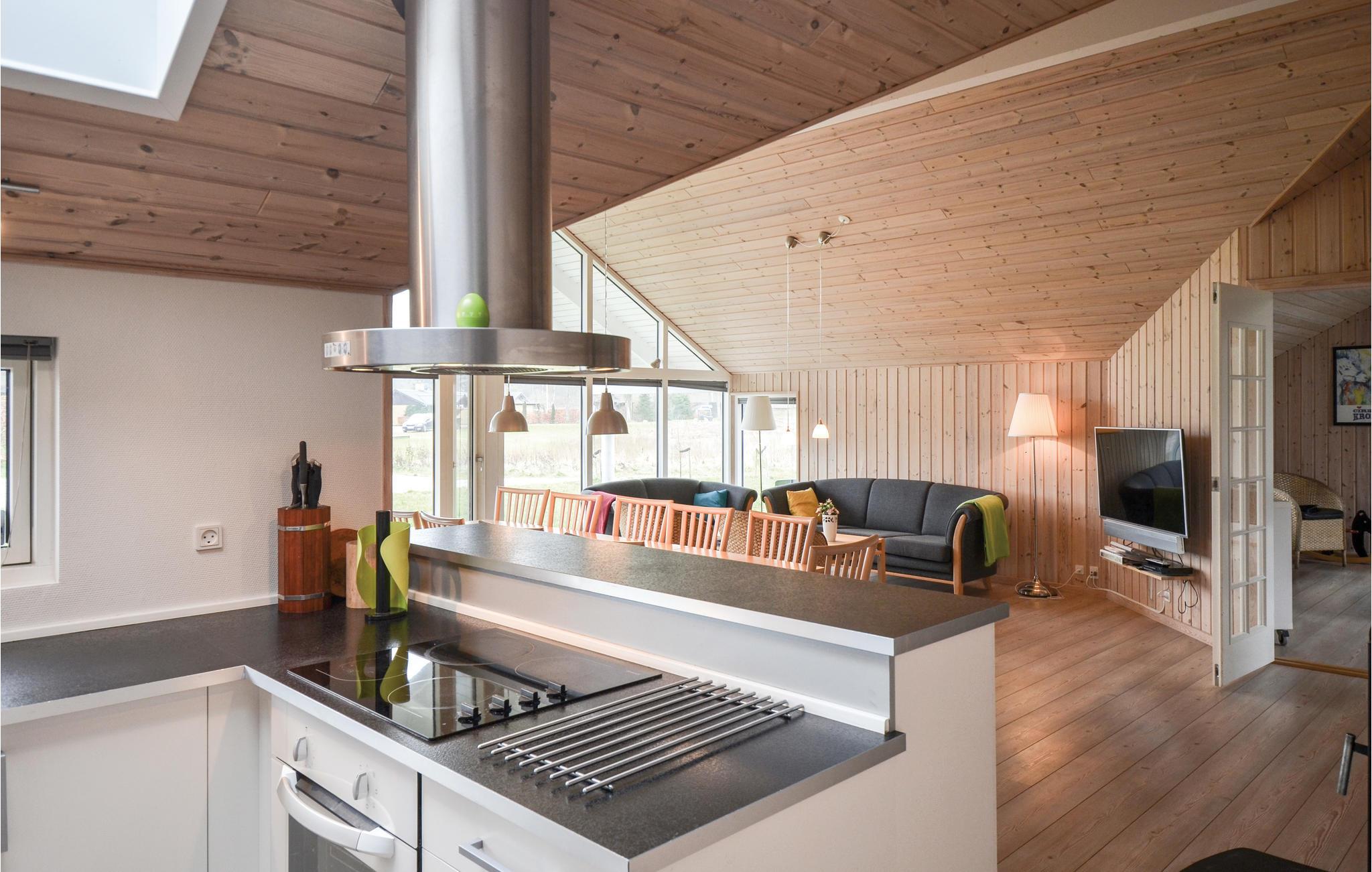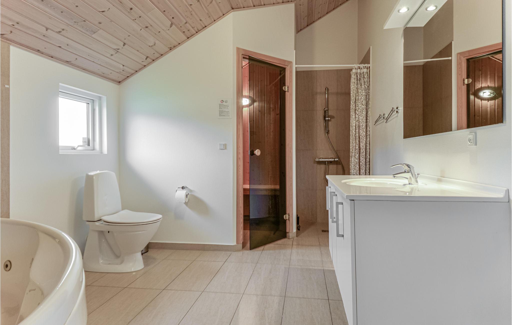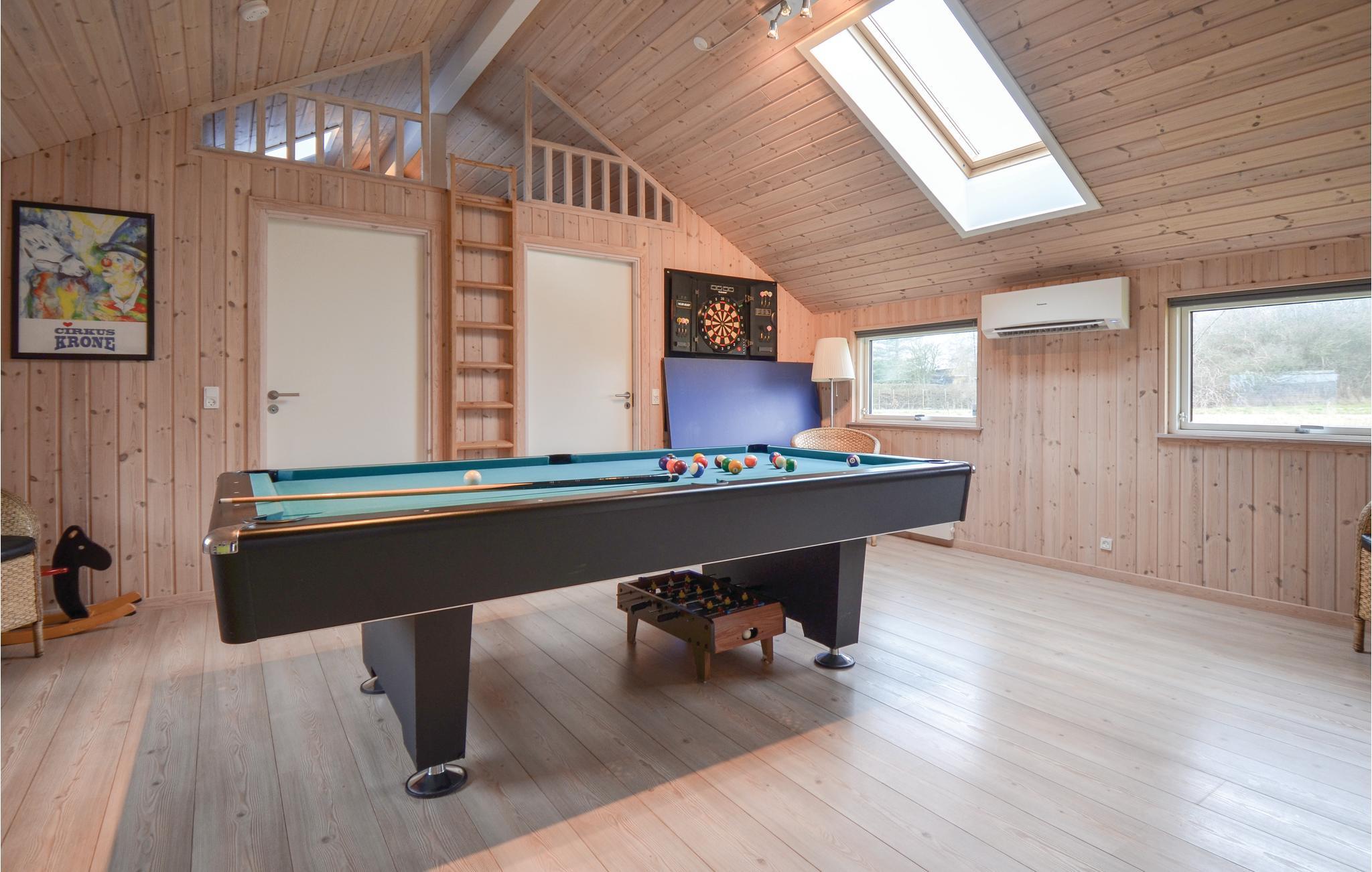 Her er perfekte feriemuligheder på alle tidspunkter af året. Sommerhuset er fyldt med faciliteter og aktivitetsmuligheder til såvel en som flere familier sammen. Nyd et fantastisk ophold i dette skønne hus, som er yderst velindrettet med bl.a. fire gode soveværelser, stor hems med madrasser (der er mest velegnet til børn) og to dejlige badeværelser. Hyg om aftenen og på kølige dage ved at tænde op i brændeovnen, spil et spil eller tænd for fjernsynet (Smart-tv) - her er mere end 1000 kanaler samt Netflix, så der skulle nok være noget, der kunne fange jeres interesse. Nyd også den store anlagte terrasse med havemøbler og liggestole samt det herlige vildmarksbad, der indbyder til rendyrket ferieafslapning.