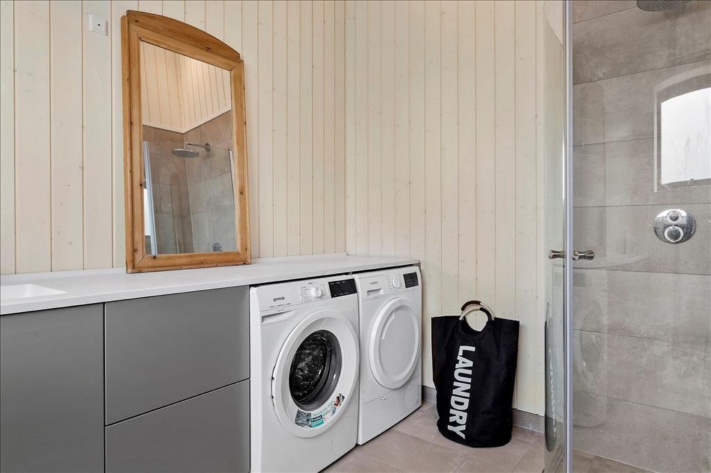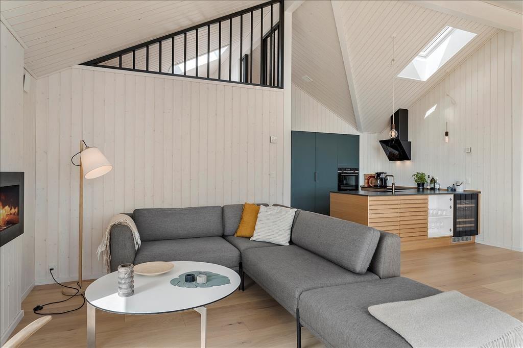 Når du træder over tærsklen, bydes du på rummelighed, lys og vinduer, der rammer havkystens blå tone. Her er hver detalje gennemført, så du kan lægge opgaven om hverdagen fra dig og i stedet samles om samtaler, grin og gode stunder. Køkken og ophold hænger sammen med udsynet og med rig plads til at være flere sammen eller slå ud hver for sig, alt efter humør og behov. Gulvtæpper, varme materialer og kvalitetsvalg skaber en atmosfære, hvor du føler dig indbudt og hjemme. Her er streamingmuligheder og bagsiden af mobilskærmen tørres af, hvis du har lyst til at arbejde et par timer, mens vinduerne leder blikket mod bølgeskvulp og afbrud. Du kan trække dig lidt tilbage, mens aftenen sænker sig, tænde for lys og lade dagens distance til hverdagens rutiner smelte blidt.