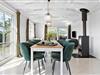 Indenfor mødes du af et lyst og indbydende miljø, hvor store vinduer lader dagslyset fylde rummene og bringer naturens farver og stemning helt med ind i huset. Her er plads til at samles om måltiderne, til lange snakke ved bordet og til små pauser, hvor du kan trække dig tilbage med en bog eller bare lade tankerne vandre. Indretningen er skabt med varme materialer og gennemførte detaljer, der giver en behagelig og afslappet atmosfære. Du kan finde et roligt hjørne, nyde udsigten eller lade dig inspirere af havets foranderlige spil i horisonten. Når aftenen falder på, breder en stille ro sig, og du kan lade dagen glide over i de lune aftentimer med bløde lys og tid til at være helt til stede.