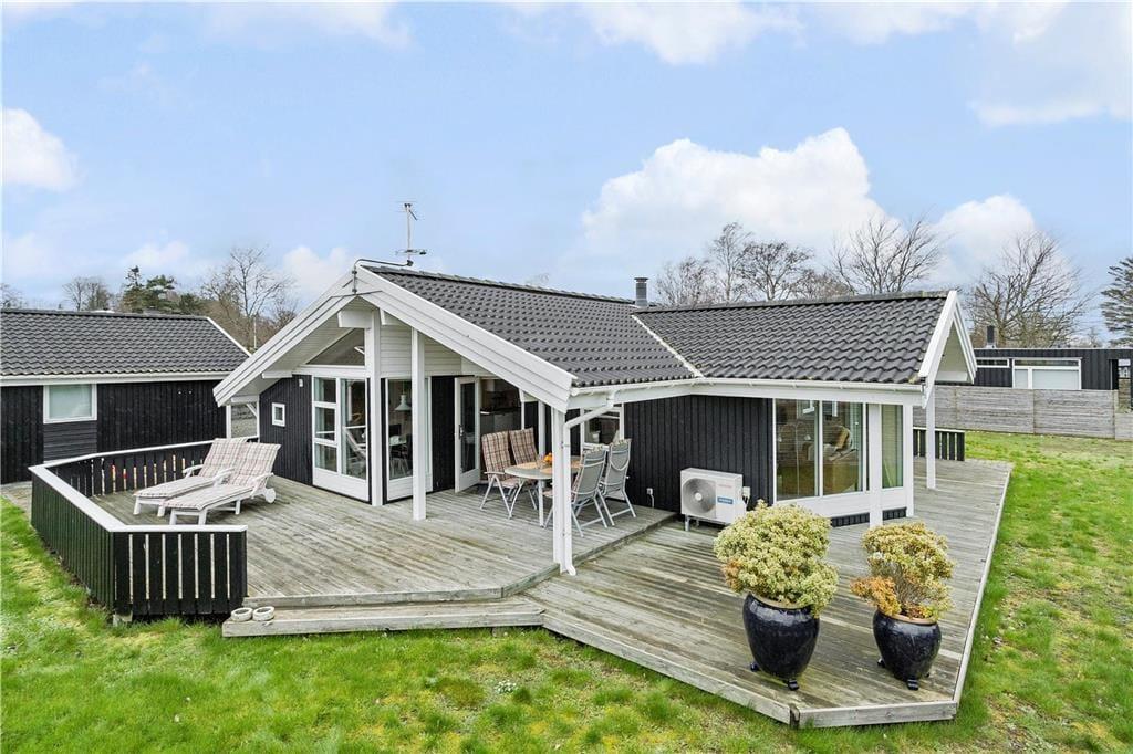 Udenfor finder du en dejlig have, der skaber trygge rammer for både børn og voksne. Haven indbyder til leg og afslapning, mens terrassen langs sommerhuset giver mange muligheder for at nyde udelivet hele dagen. Her kan du starte morgenen med en kop kaffe i solen, spise frokost i læ og afslutte dagen med grill og hygge under åben himmel. Med kun 100 meter til stranden er det oplagt at tage håndklædet over skulderen og gå ned til vandet for en frisk dukkert. Når du kommer tilbage, kan du fortsætte ferien på terrassen, hvor roen og nærværet får lov til at fylde. Haven og terrassen bliver hurtigt familiens naturlige samlingssted.