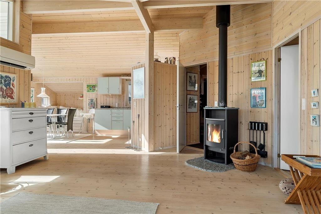 Dette skønne sommerhus ved Norsminde byder på en lys og indbydende atmosfære, hvor hele familien hurtigt føler sig hjemme. Husets hjerte er den rummelige stue, der ligger i åben forbindelse med køkkenet, så alle kan være sammen – både når måltiderne tilberedes, og når der hygges i sofaen. Store vinduespartier lukker lyset ind og giver en dejlig udsigt til haven. Indretningen er enkel og moderne med plads til både afslapning og samvær, så her er det let at sænke skuldrene og bare nyde ferien. Med tre gode soveværelser samt en hems er der god plads til både voksne og børn, hvilket gør huset oplagt til en familieferie.