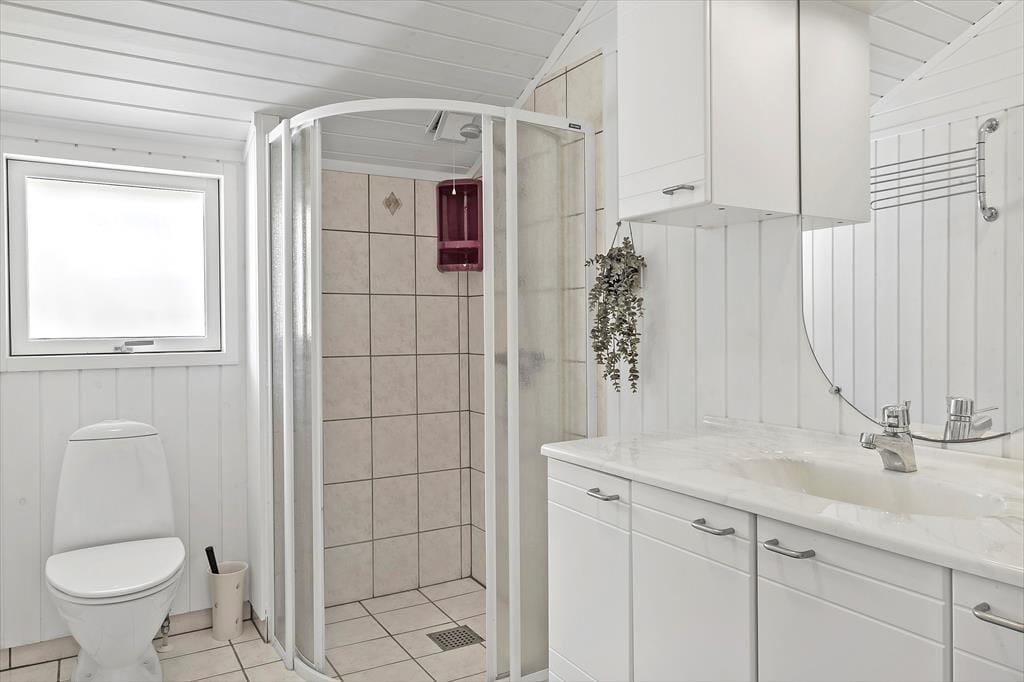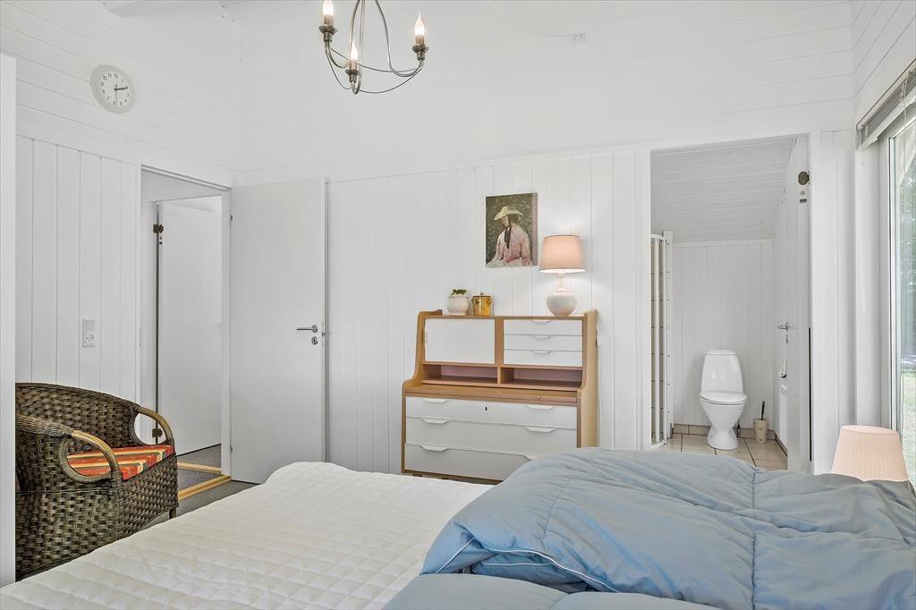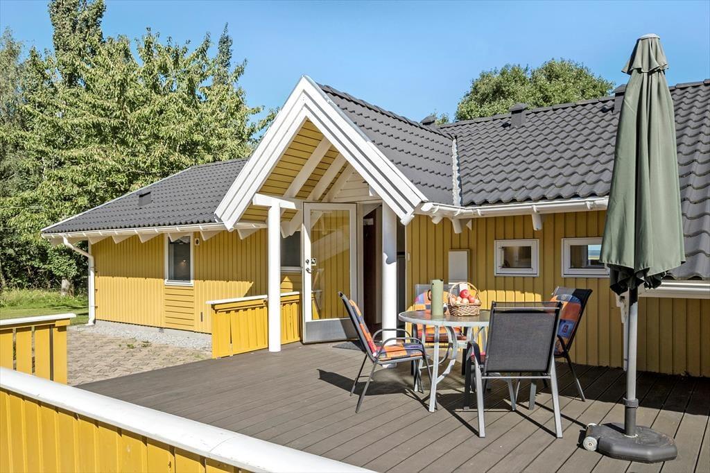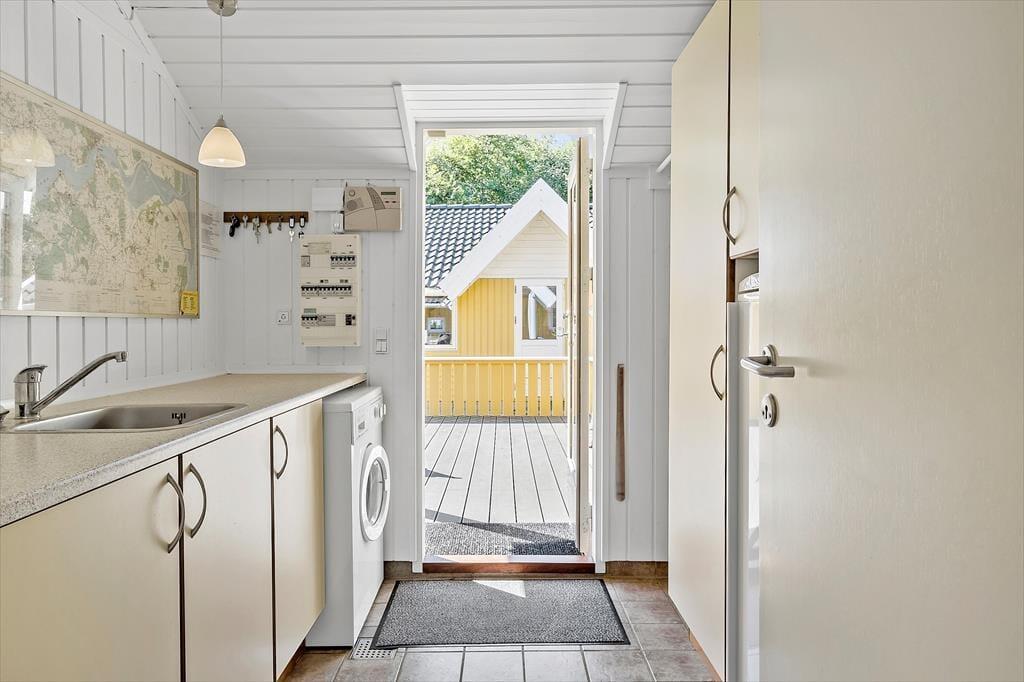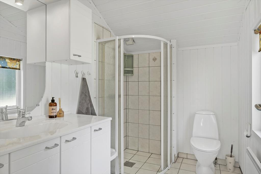 Sommerhuset lyser op med sin gule træfacade i det smukke fjordlandskab, der byder på skovklædte arealer og flade strandenge med græssende køer. Takket være de store stuevinduer kan I nyde synet af naturen, selv når I slapper af i sofaafdelingen – eventuelt med ild i brændeovnen, hvis det er køligt udenfor. Spisepladsen er praktisk placeret nær det åbne og veludstyrede køkken, og der er også en alkove, der indbyder til en middagslur eller en tilbagelænet stund med avisen efter frokosten. I entréen er der en vaskemaskine, mens begge badeværelser er med bruser og gulvvarme. På de fire soveværelser er der plads til, at syv personer kan sove komfortabelt.