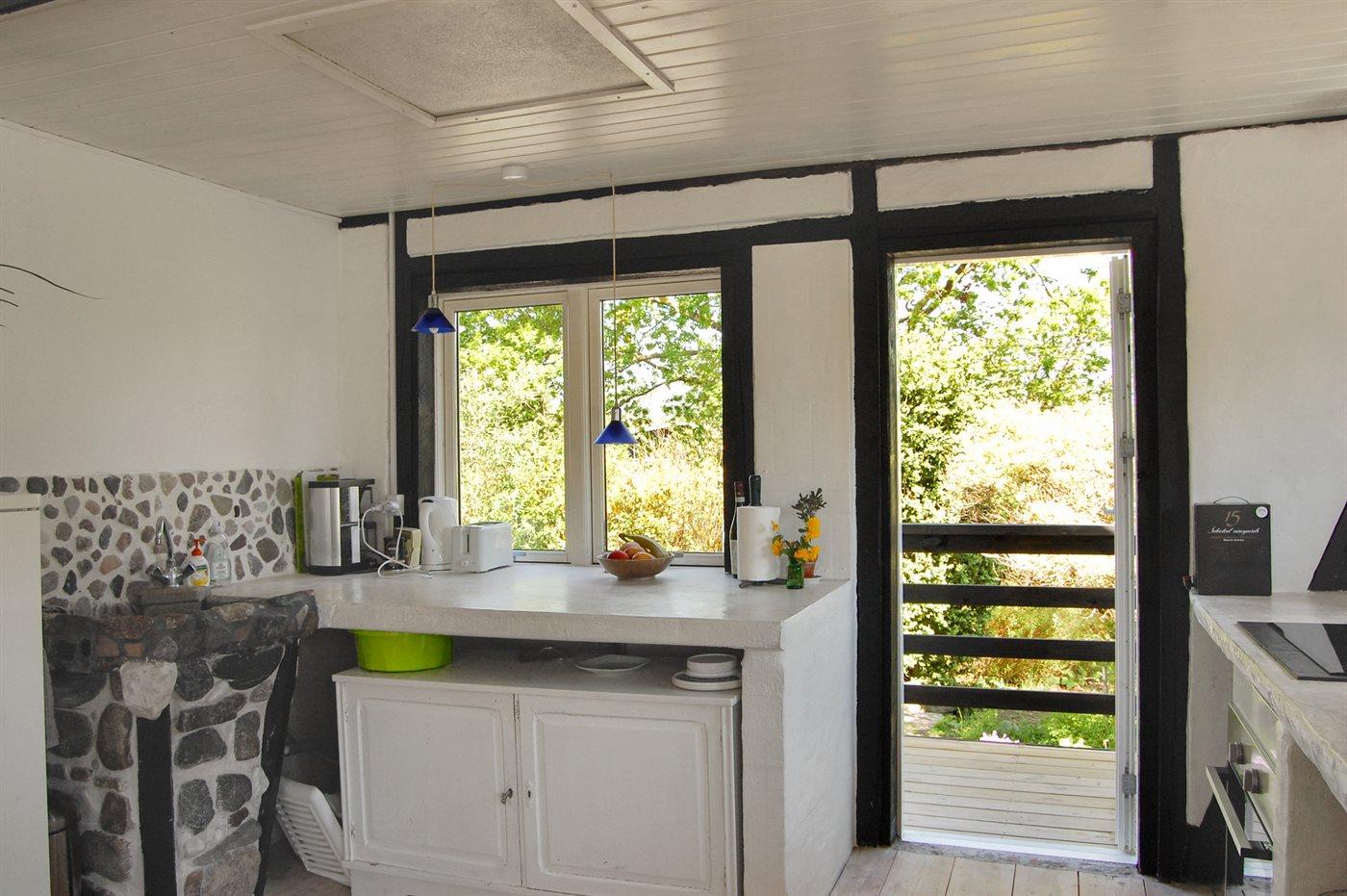 Skønt og velholdt sommerhus med gode terrassearealer beliggende tæt på vandet og dejlig børnevenlig badestrand i et roligt og naturskønt område syd for Aarhus. Huset ligger højt på en skrånende grund med havudsigt fra såvel hus som grund. Her kan man nyde udsigten over det fredede naturområde ved vandet og Aarhus Bugt, og følge den smukke natur når årstiderne skifter på helt tæt hold. Huset er indrettet lyst og hyggeligt med mange unikke detaljer som f.eks. synlige bindingsværk og fritlagte bjælker samt et rustikt køkken, der giver en helt særlig stemning i huset.