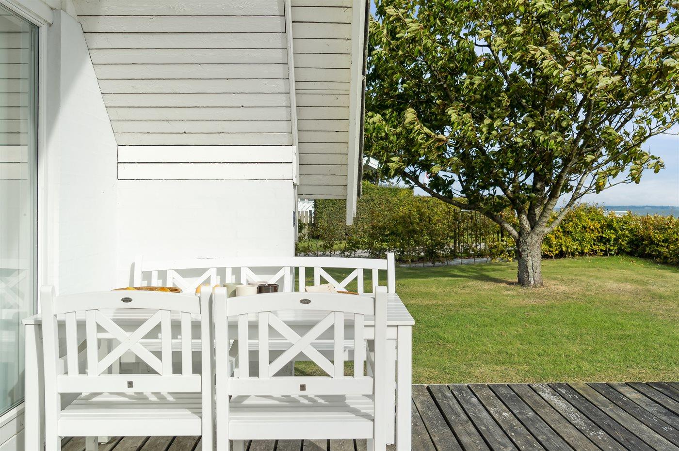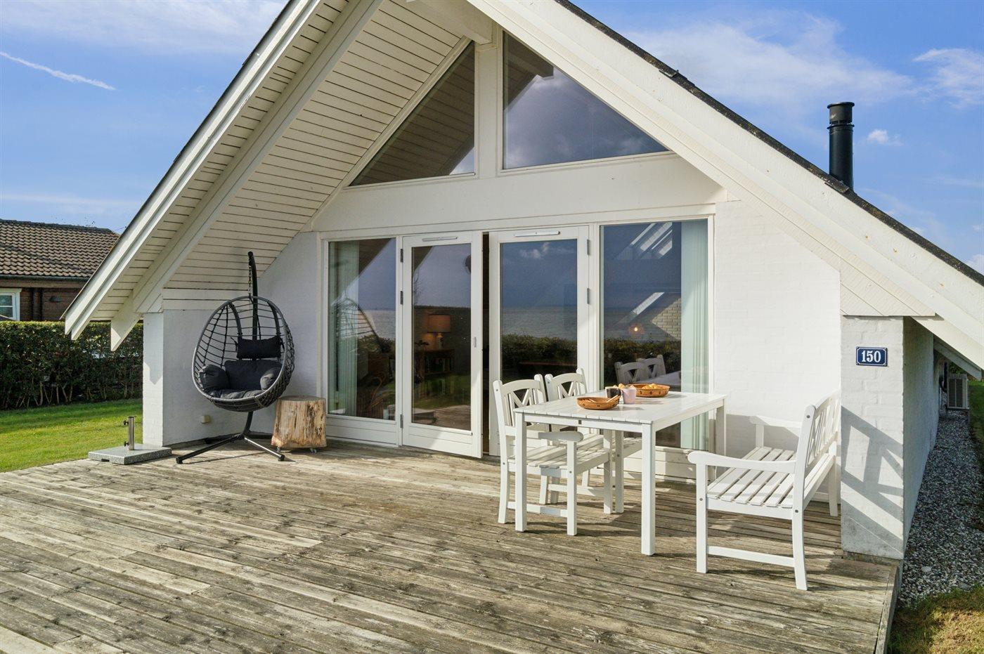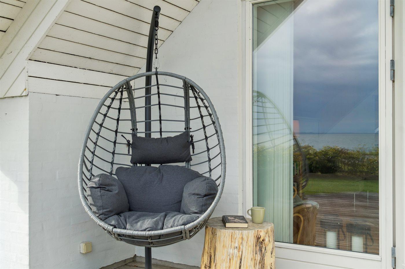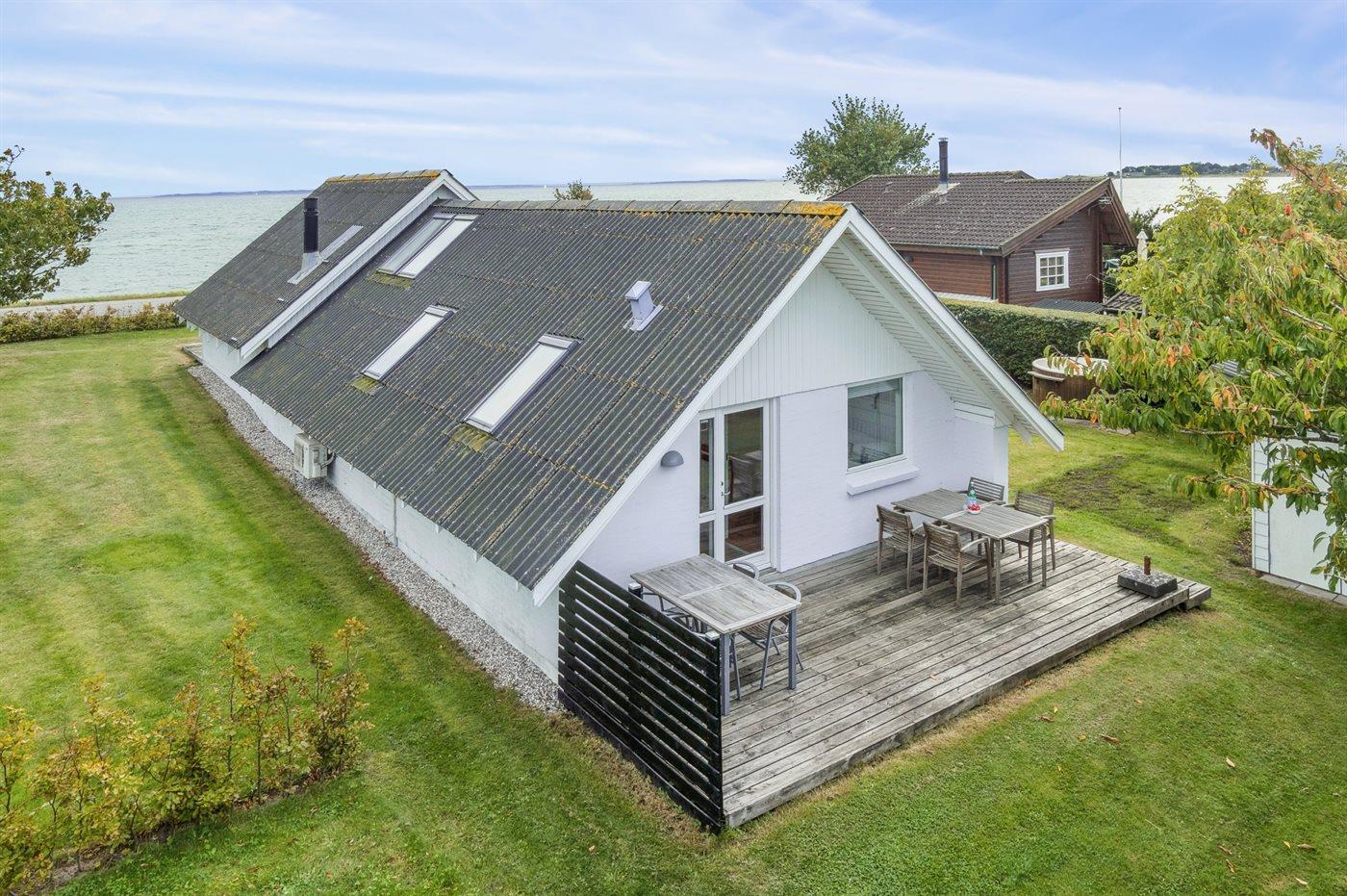 Der er 180 graders panoramaudsigt over vandet og det er svært, at løsrive sig fra dette syn. Dette gælder både fra det skønne terrasseareal, som findes foran huset direkte imod vandet og på siden af huset hvor der således altid er mulighed at finde en plads med læ. Også inde fra sommerhuset er udsigten fantastisk.