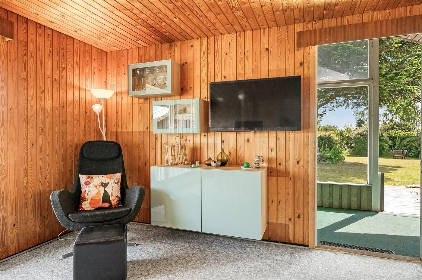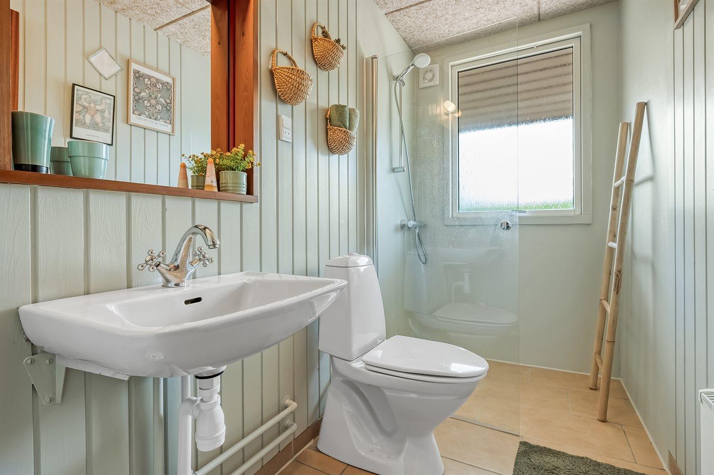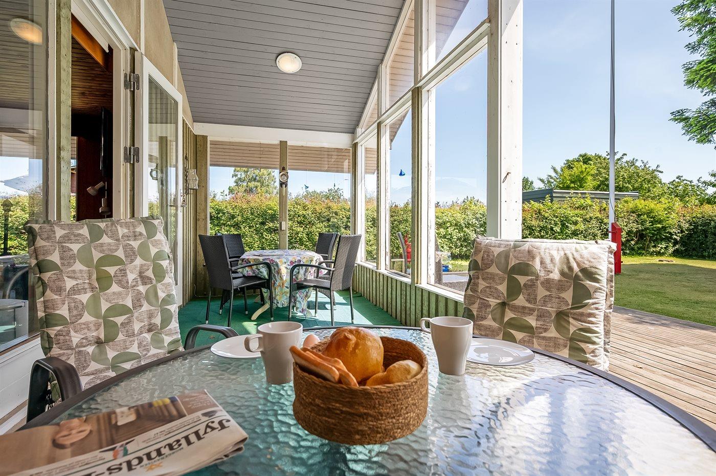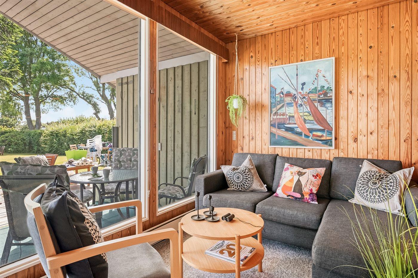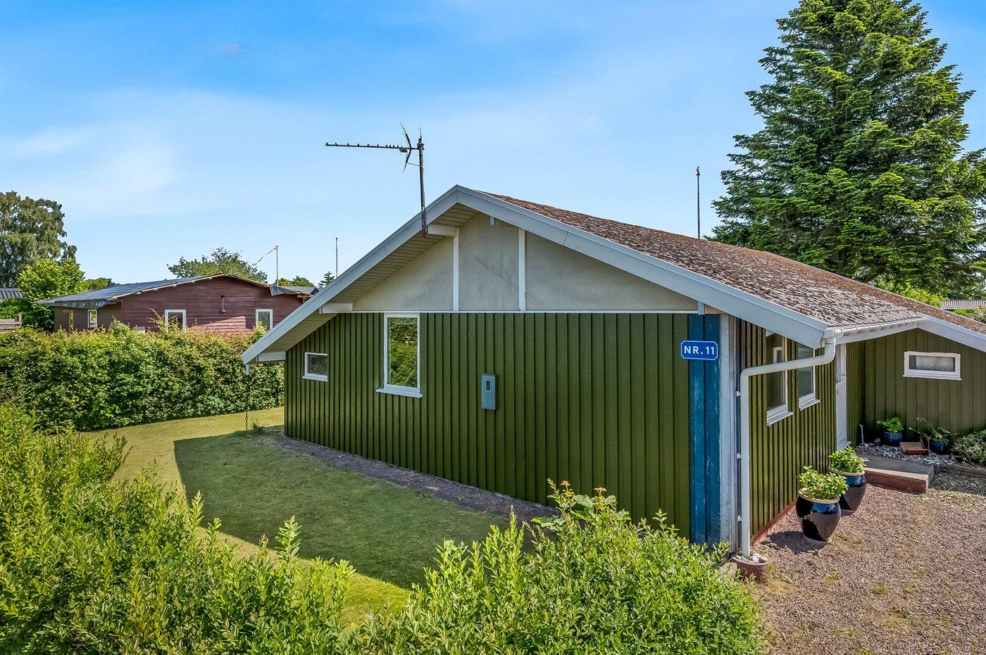 Ferieboligen er beliggende på en 688 m² stor havegrund. Der er 150 m til havet. Der er 1500 m til fjorden. Der er en badebro i nærheden. Nærmeste forretning er beliggende i en afstand af 800 m. Til ferieboligen hører åbent terrasseareal. Desuden er der overdækket terrasse. Udendørs bruser. Grill til rådighed. Parkering ved ferieboligen.