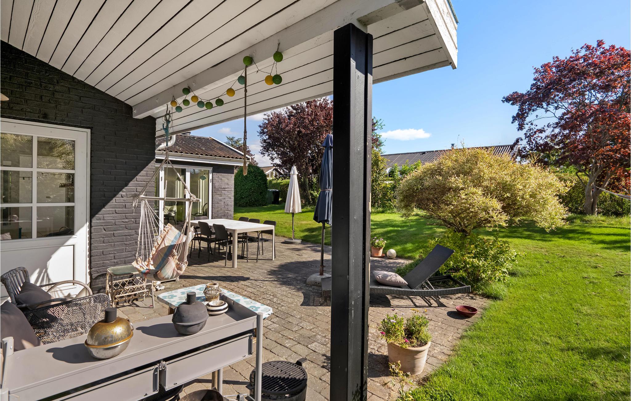 Haven tager sig lige så indbydende ud som huset, så her kommer I sikkert også til at tilbringe mange gode timer. Jeres børn kan boltre sig på græsplænen, mens de voksne nyder en kop kaffe i solen.