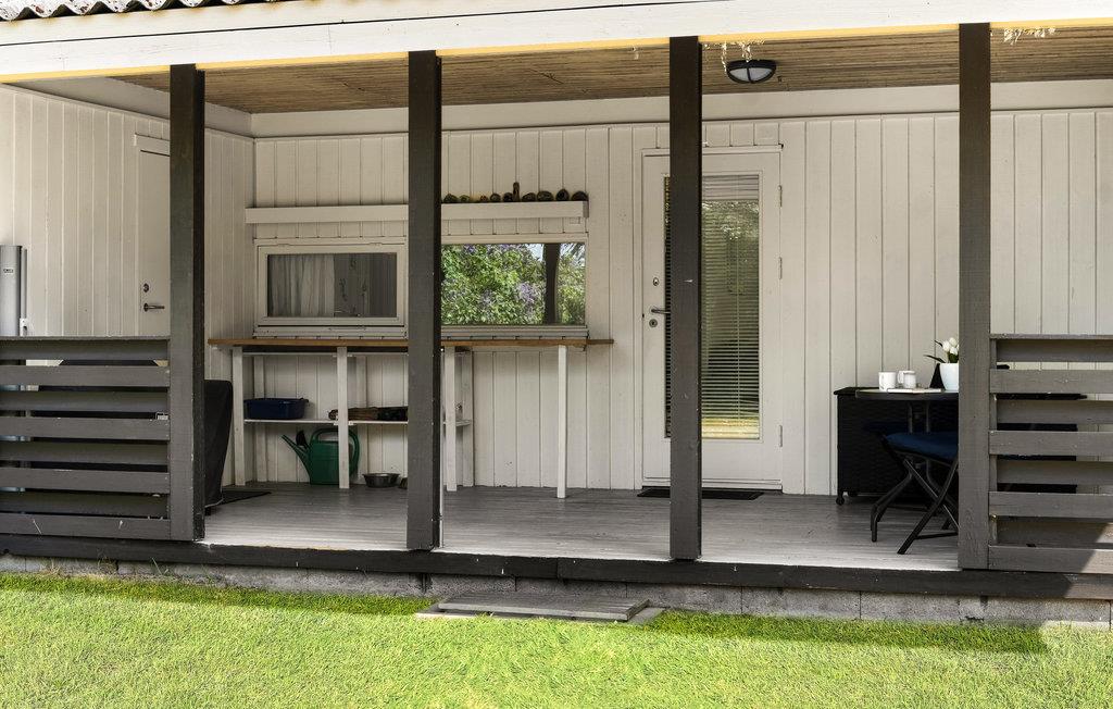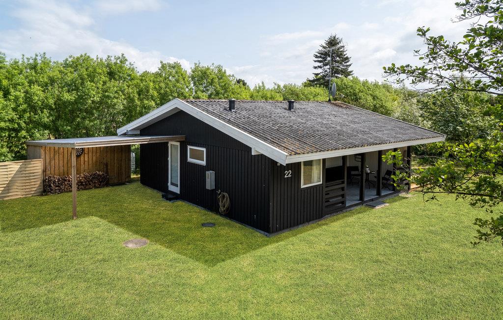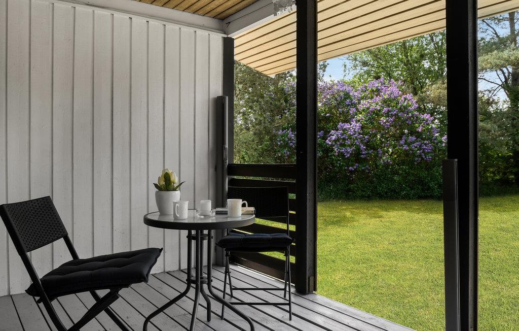 Hyggeligt sommerhus tæt på Albuen Strand med stor have og overdækket terrasse til afslapning.