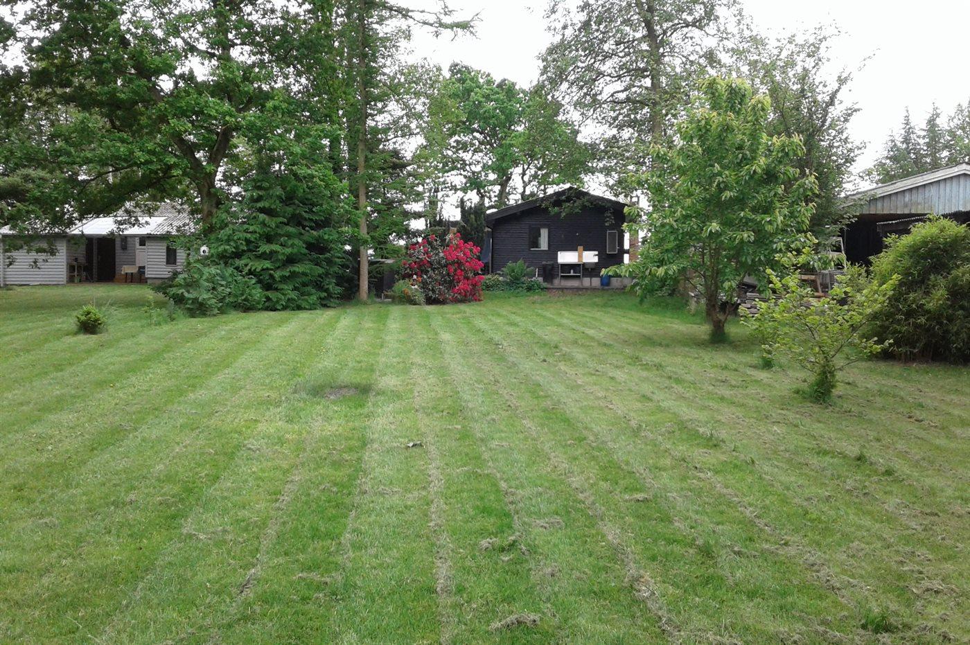 Hyggeligt træsommerhus ved Mossø med naturgrund