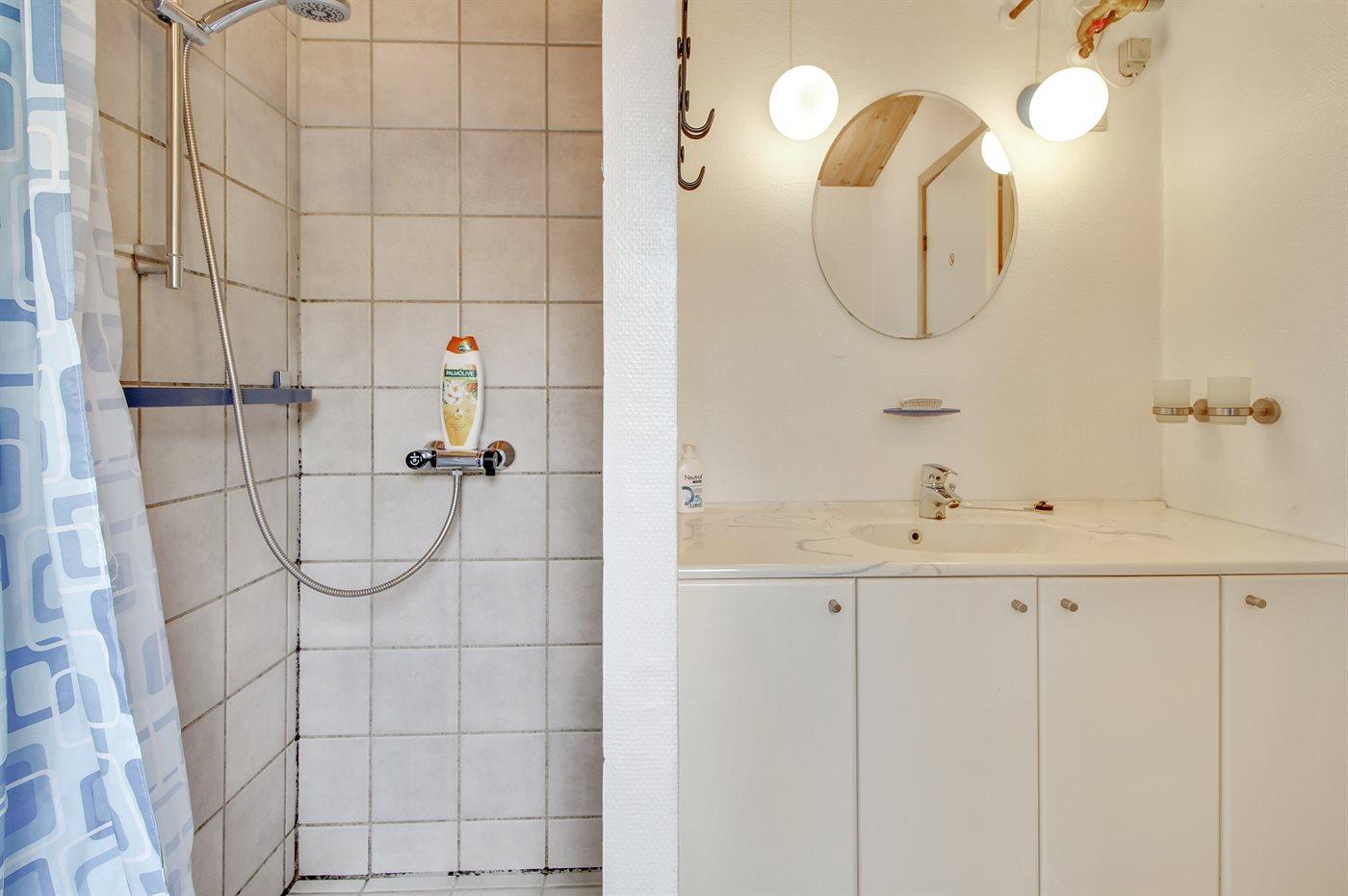 Der er 1 badeværelse med bruser og 1 toilet.. Der er gulvvarme på 1 badeværelse.