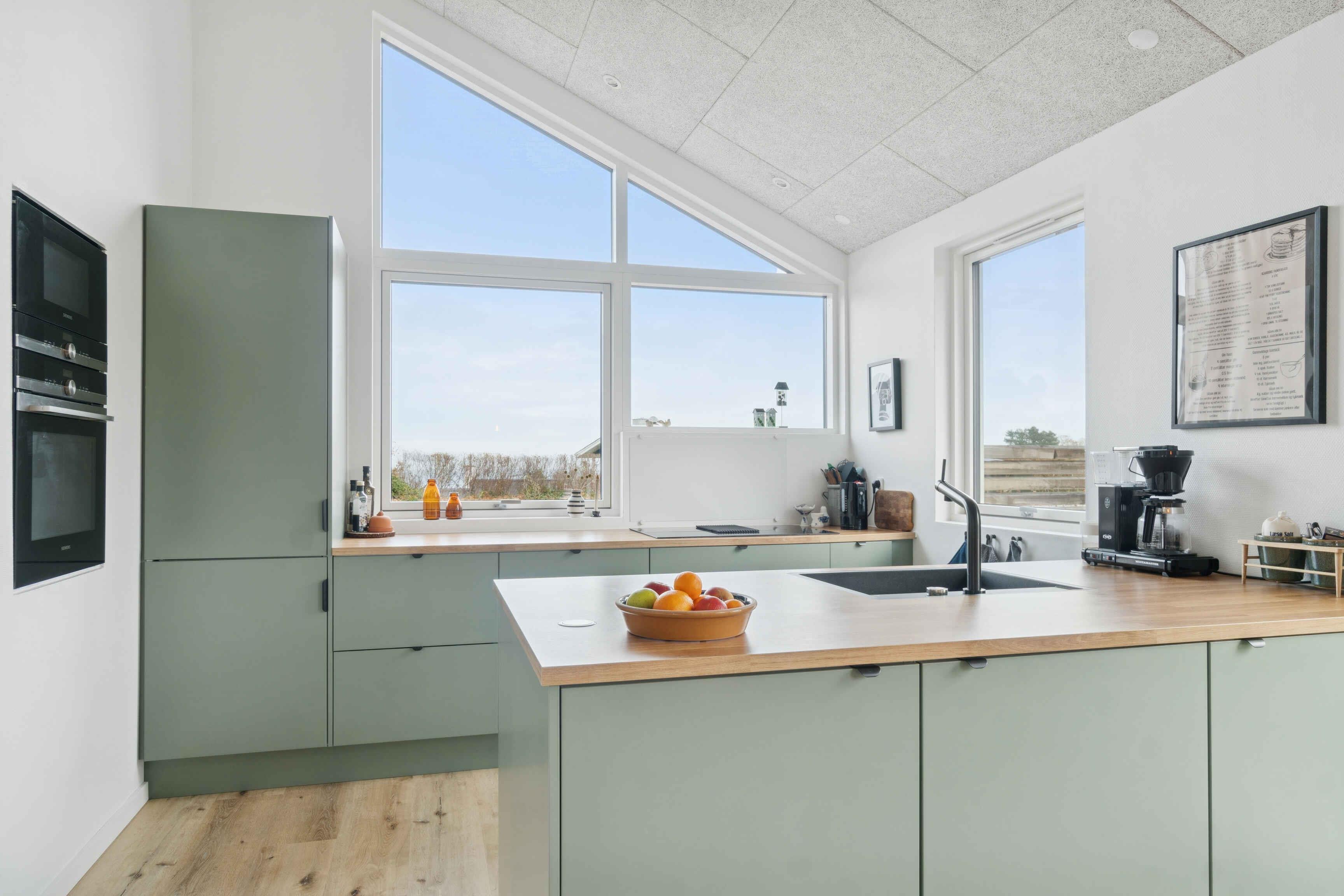 Velkommen til huset med arkitektoniske og stilfulde detaljer der med et unikt lysindfald understøtter havudsigten fra køkken- og spiserum. Nyd ferien sammen på bakketoppen med kun 250 meter til stranden. Huset ligger tæt på familieforlystelser.