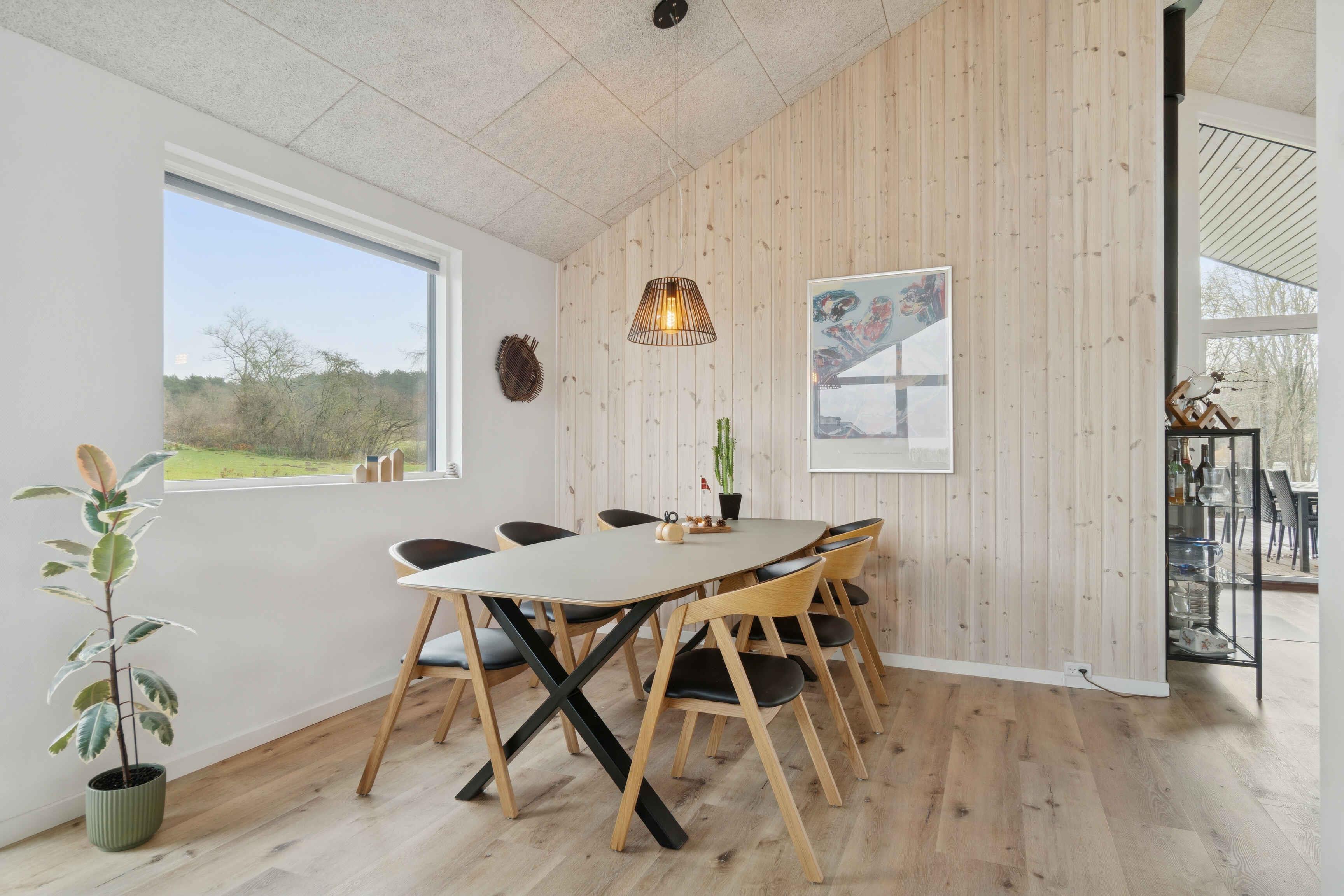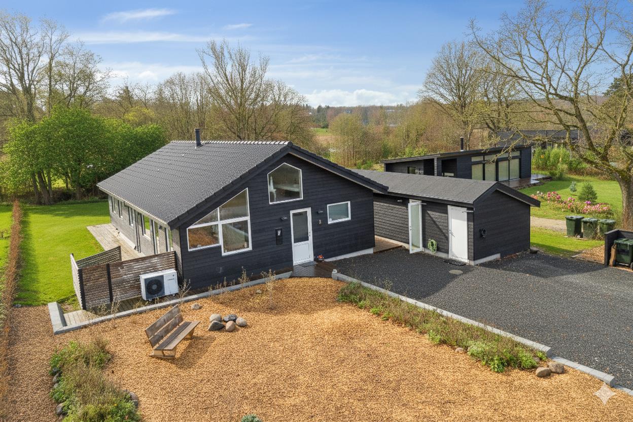 Velkommen til et sommerhus, som fremstår med unikke gennemtænkte og elegante arkitektoniske detaljer og den enkle, stilfulde indretning åbner sig flot op med lofter til kip og et formidabelt lysindfald som topper udsigten i køkken-all rummets udsigt over vandet. Her kan I nyde livet og tiden sammen på bakketoppen med kun 250 meter til stranden I sommerhusets store lyse alrum med højt til loftet er der masser af plads til hygge med spil og snak om spisebordet, i køkkenafdelingen hvor alle funktioner er super praktisk indrettet alt imens I nyder den fabelagtige havudsigt gennem gavlens store vinduespartier. I stuen er der en rummelig hyggeafdeling til afslapning mens man kan lune fødderne ved brændeovnen eller nyde udsigten mod syd, hvor et kæmpe vinduesparti smukt indrammer landskabet udenfor eller du kam åbne den bredde foldedør så naturen inviteres med helt ind i stuen. Sommerhuset er stilfuldt indrettet med sans for god kvalitet og intelligente løsninger, som bl.a. fornemmes i de 2 velindrettede badeværelser som udstråler smukke detaljer. Designmøbler af nyere dato giver en unik charme og personlighed og er medvirkende til at skabe en dejlig afslappende atmosfære. Når solen skinner, kan I åbne dørene og trække udenfor for at tilbringe dagen på mere end 120m2 træterrasse og nyde solen eller finde skygge under de 25m2 overdækket terrasse. Her giver de forskudte facader altid mulighed for at finde læ, skygge eller en dejlig solplet efter behov. Når mørket falder på, kan I nyde et glas vin i skumringen og mærke, hvordan roen sænker sig omkring jer, mens stjernerne titter frem på himlen over vandet. Husets placering Skovgårde ved Fjellerup på Norddjurs er centralt billigende tæt ved Mols’ kulturelle tilbud og mangfoldige landskaber lige ved hånden og kun 20min. kørsel fra Djurs Sommerland. Lysten til udeliv kan nemt udleves i haven som er udlagt i flere niveauer, den syd-/vest vendte have med græs ligger bag huset så man kan opholde sig ugenert i solen den udstrakte dag som også kan afsluttes med tilberedning af aftensmaden på den store gas-grill. På det højt billigende plateau i forhaven kan man fra bænken nyde solnedgangen med udsigt mod nord ud over havet med en kølig drink. Obs, udlejes ikke til erhversmæssigt brug.