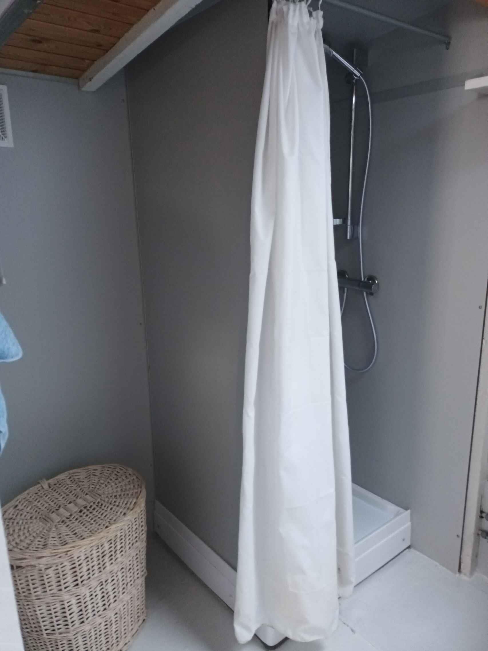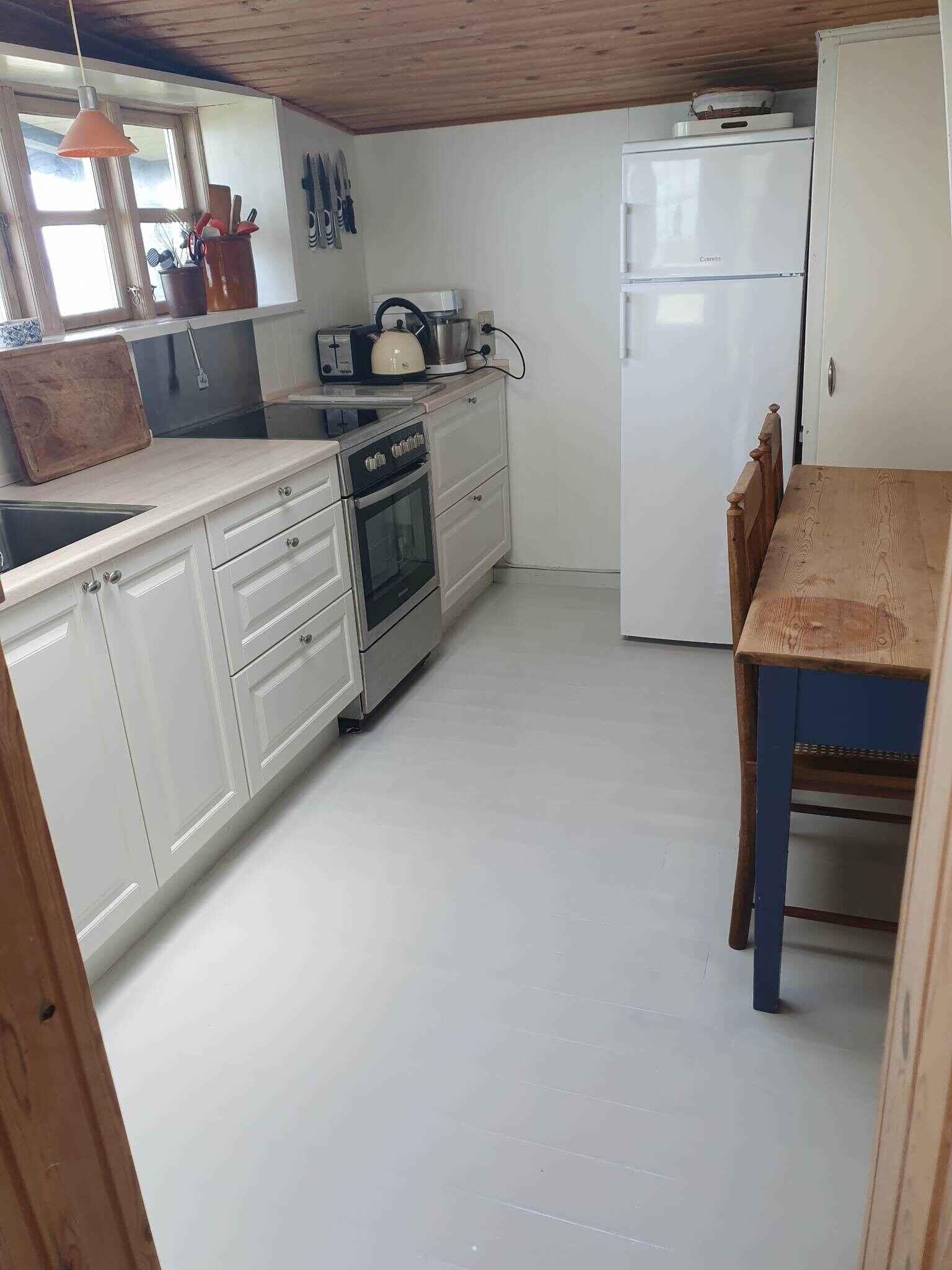 Unikt beliggende og charmerende familieferiehus, originalt men helt up-to-date, og hyggeligt indrettet med fine detaljer og en skøn panoramaudsigt over vandet. Gratis internet. Huset er indrettet i en stil og med møbler, der passer til dets oprindelse. Det er som at træde lidt tilbage i tiden til barndommens skønne somre, men alt er i orden og velfungerende. Hyggelig stue med en skøn spiseplads med vinduer ud mod vandet. Der er smart-TV, hvor man kan benytte streaming tjenester via egne abonnementer. Her kan man rigtig nyde morgenkaffen og udsigten. Der er også en dejlig hyggekrog, hvor familien kan spille spil sammen eller måske på mobilen. Køkkenet ligger i åben forbindelse med stuen og har også vinduer ud mod vandet. Huset har to soveværelser med dobbeltsenge. Det ene er helt separat med indgang fra terrassen (seng: 180x200 cm), og det andet ligger i huset med adgang til hhv wc/bad og køkken, men altså indrettet som alkove. Badeværelse med toilet og brusebad samt vaskemaskine. Udenfor er der en hyggelig overdækket terrasse og en åben terrasse – trukket lidt tilbage fra stranden, så der er læ. Der er flere hyggekroge på forskellige sider af huset. Huset ligger på Norddjurs – godt placeret i forhold til udflugter i mange retninger. Der er ca. 20 km til Randers og Randers Regnskov og ca. 40 km til Grenå og Kattegatcenteret - et stort, dansk akvarium med mere end 200 arter af havdyr - heriblandt hajer, pingviner, sæler og et hav af fisk. Der er knap 15 km fra huset til Djurs Sommerland, som måske især børn gerne vil besøge. Til Aarhus er der ca. 1 times kørsel. Aarhus byder bl.a. på Den gamle By, Kunstmuseet Aros, masser af caféer, restauranter og butikker i det hyggelige gå-gade område.