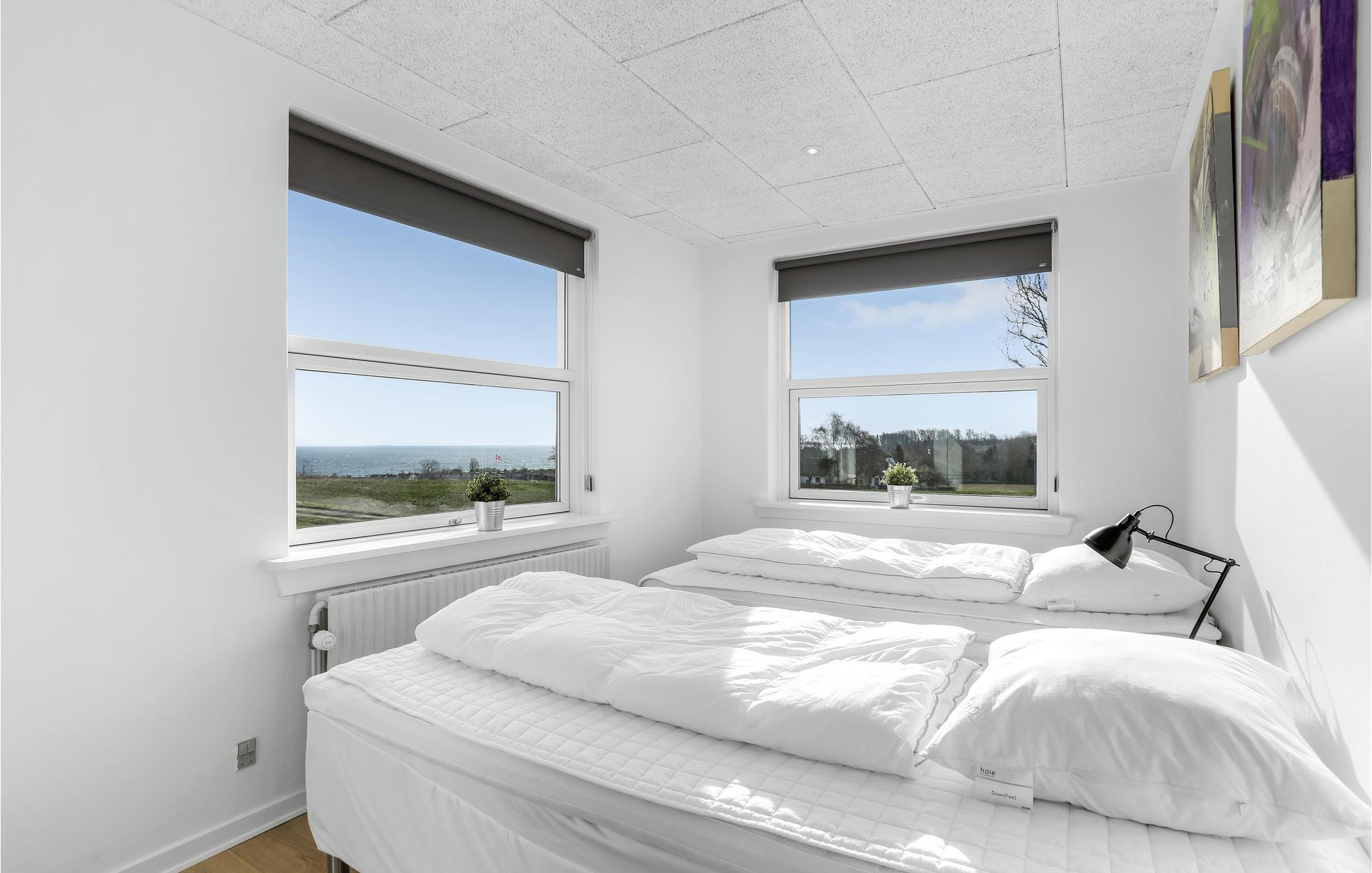 Sommerhuset har to etager og fremstår lyst og moderne. Husets hjerte er den kombinerede opholds- og spisestue i stueetagen med spiseplads, TV og stort, åbent køkken med b.la. amerikansk køleskab (inkl. stor fryser). Her er der behagelig gulvvarme, hvilket giver et behageligt indeklima. Derudover er der i stueetagen et skønt soveværelse med to enkeltsenge og havudsigt samt to gode badeværelser med gulvvarme, det ene også med badekar. På førstesalen er der tre gode soveværelser, det ene med havudsigt og de andre udsyn til grønne omgivelser. I finder en vaskemaskine og tørretumbler i bryggerset.