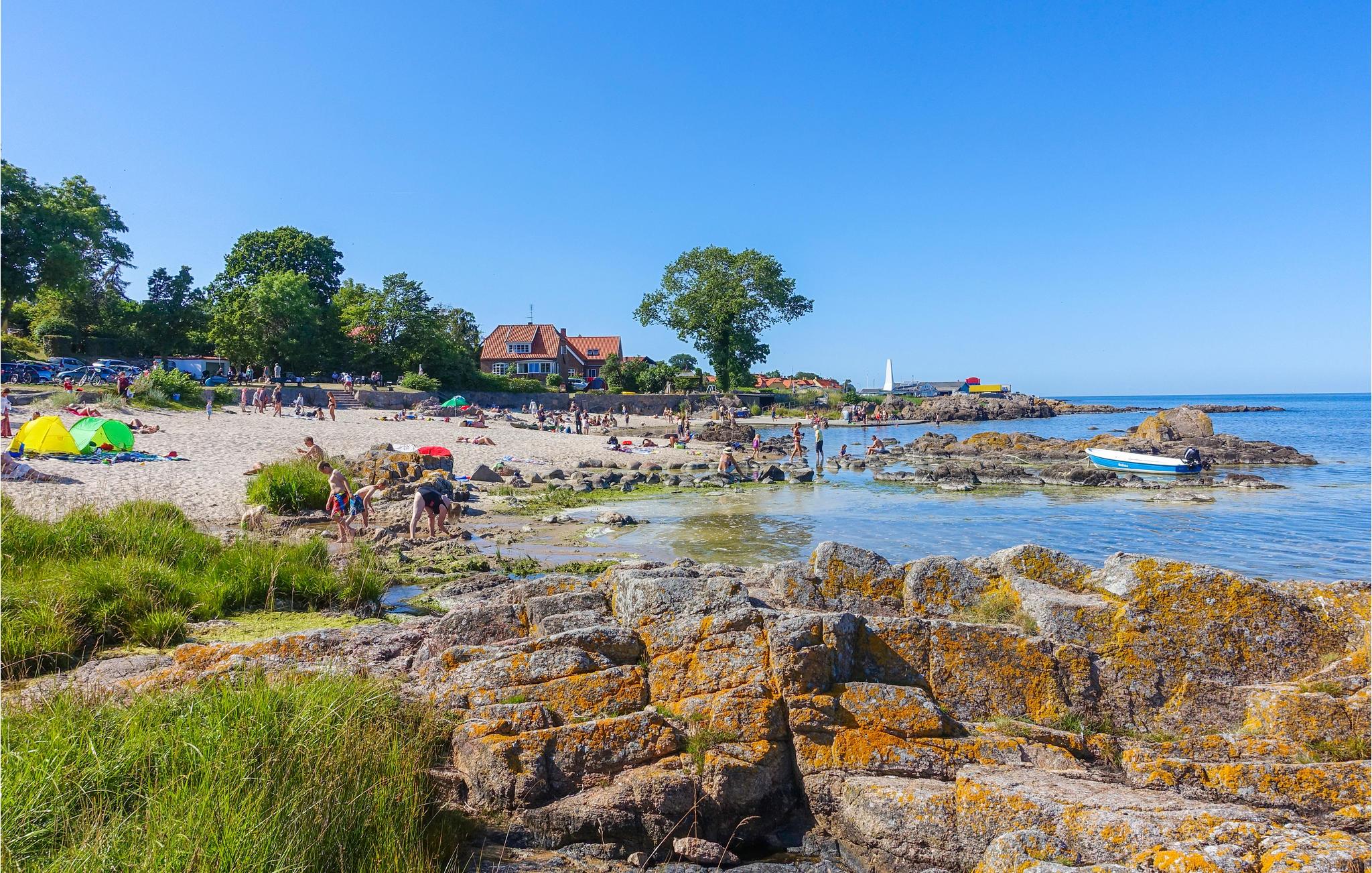 Huset ligger på en rolig vej, kun 900 meter fra den skønne Næs Sandstrand og flotte klipper. Dermed er det et glimrende udgangspunkt for mange strandture og flotte gåture langs klipperne, hvor I kan beundre de fortryllende solnedgange. Huset ligger få minutters gang fra indkøbsmuligheder, restauranter m.v. I bor også i overskuelig afstand fra flere af Bornholms store attraktioner, herunder Jons Kapel, Hammershus Slotsruiner, Bornholms Kunstmuseum og charmerende Gudhjem.