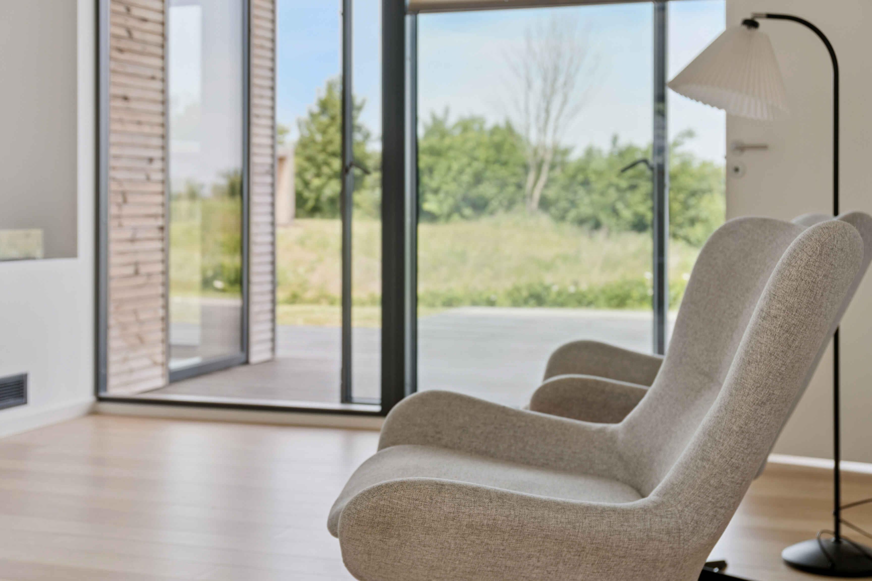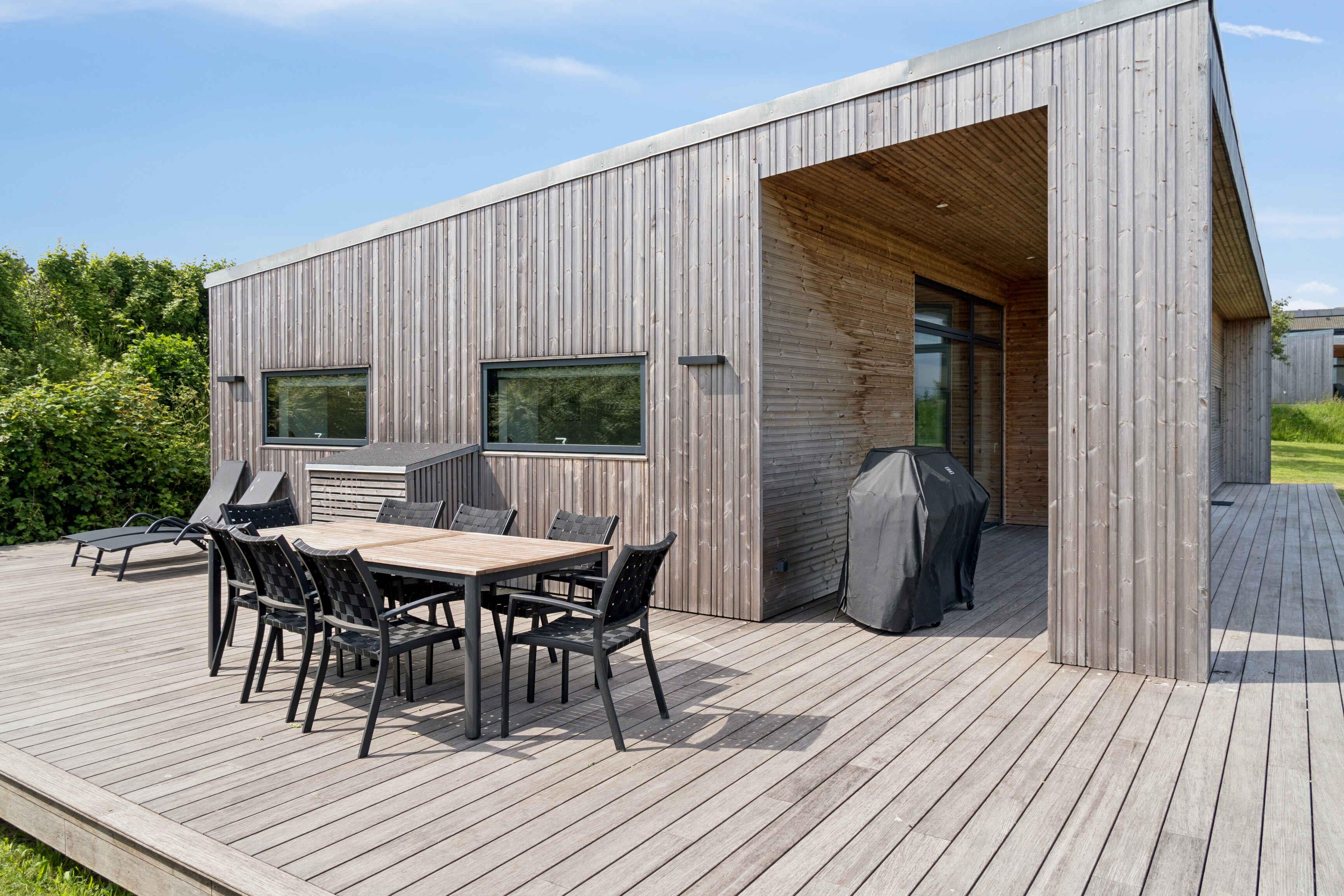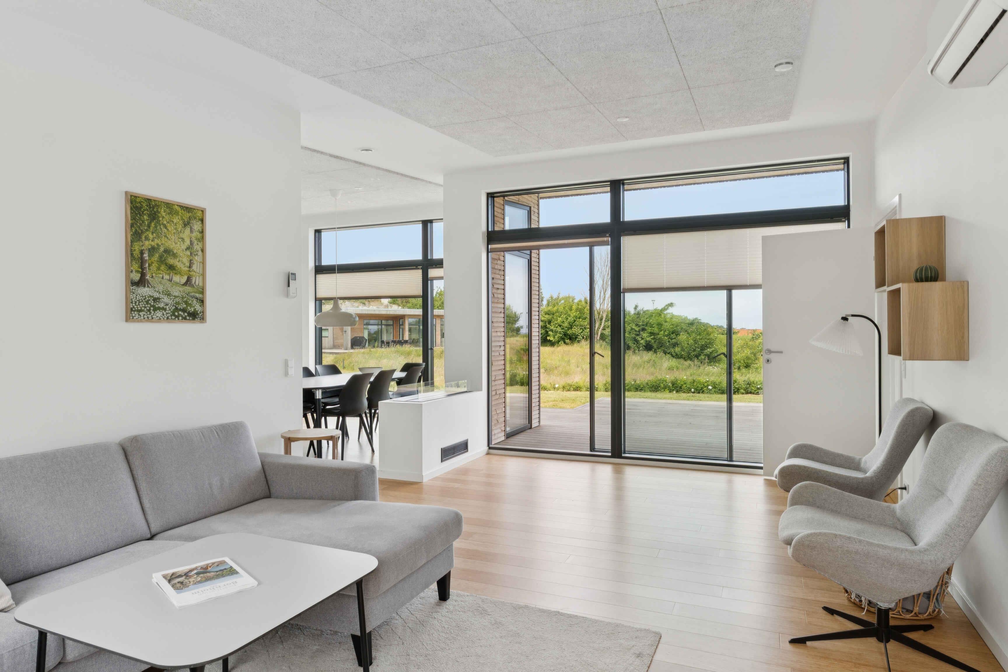 Arkitekttegnet feriehus med havudsigt, bæredygtige materialer, 4 soveværelser, 2 badeværelser, stor terrasse, gasgrill, udebruser og ladestander – tæt på strand og naturoplevelser.