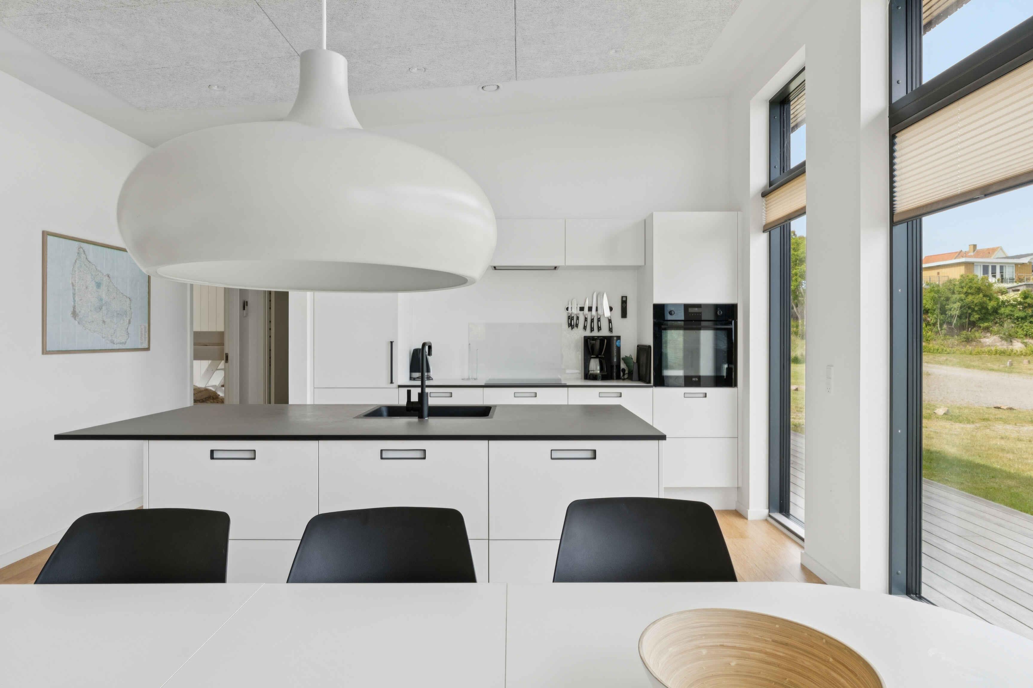 Flot, arkitekttegnet feriehus med havudsigt. Huset ligger nær det smukke naturområde ved Hammeren i charmerende Sandvig og kun 50 meter fra en cykelvej og gangsti, der fører direkte ned i det hyggelige Allinge-Sandvig-område. Huset er lyst og moderne indrettet og med kvalitet og bæredygtigt matriale og garanterer et kvalitetsophold på smukke Nordbornholm. I kommer til at tilbringe mange hyggelige og afslappende stunder i den rummelige opholdsstue med vanddamppejs, hvor I kan flade ud i gode møbler og se film, høre musik, spille spil eller bare hyggesnakke. I det åbne, veludstyrede køkken med tilhørende spiseplads er det en fornøjelse at tilberede lækre feriemåltider. Alle husets fire gode soveværelser og to flotte badeværelser har behagelig gulvvarme. Det samme har bryggerset, hvor I finder en vaskemaskine. Til huset hører en stor, delvist overdækket træterrasse med havemøbler, hvor I kan slappe godt af og nyde solen og den friske luft til et glas vin. I har også en gasgrill til rådighed, så I kan afslutte en eller flere feriedage med en hyggelige grillaften. Derudover har huset en udebruser, som er perfekt til at skylle sandet af sig efter en strandtur. Har I elbil, så har huset en ladeboks med 7 m kabel med type-2-stik. Huset er et glimrende udgangspunkt for strandture, og I har også mange flotte vandrestier tæt på, blandt andet langs den smukke klippekyst, hvor I kan opleve fortryllende solnedgange. Nordbornholm er spækket med attraktioner. I kan tage til Hammershus Slotsruiner, Jons Kapel, Helligdomsklipperne, Olsker Rundkirke og Bornholms Kunstmuseum. Et fantastisk lækkert kvalitetshus med bæredygtighed for øje, som byder på havudsigt, flot natur, ro, og en dejlig sandstrand kun 500 meter væk. Obs, udlejes ikke til erhversmæssigt brug.